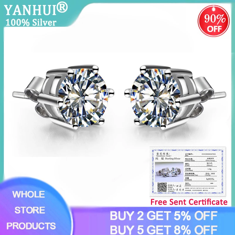 Бренд: YANHUI Fine или Fashion: Fine Материал серьги: 100% оригинальное серебро Серьги камня: 1 карат циркония Вес: 1,9 г Серьги/логотип: S925 Сертифицированные ювелирные изделия с серебряным сертификатом и полировочной тканью Если вы получите поддельные серебряные серьги, мы вернем вам стоимость в 10 раз.