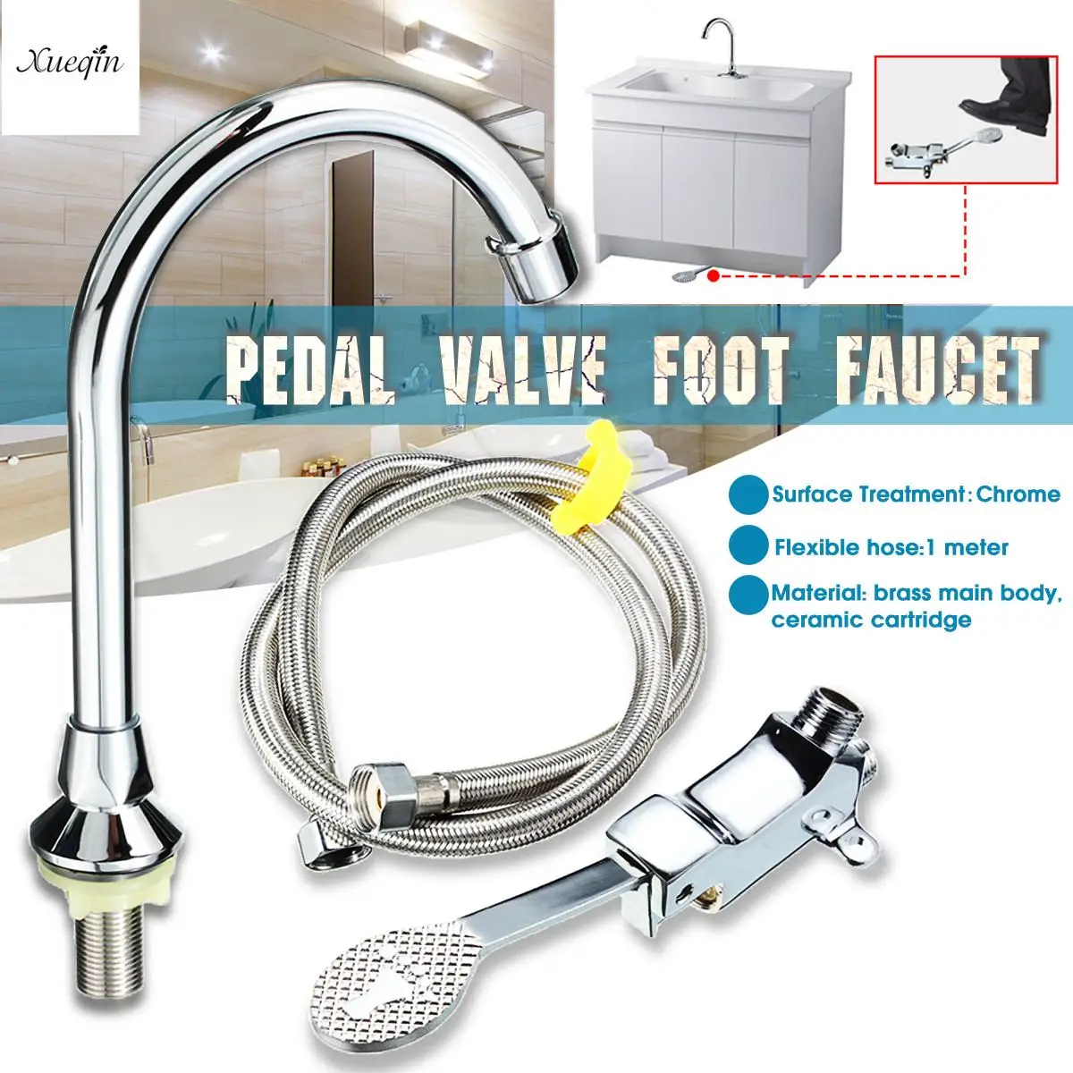 Смеситель для раковины в ванную комнату Xueqin, медицинский лабораторный кран, медная педаль, кран для воды, холодная вода, 1 м