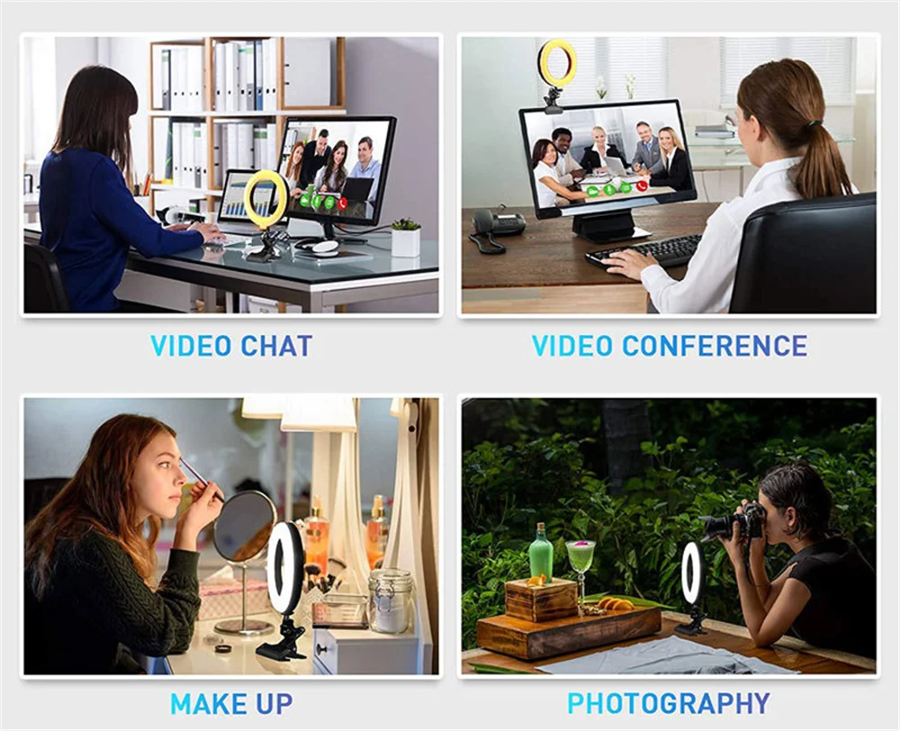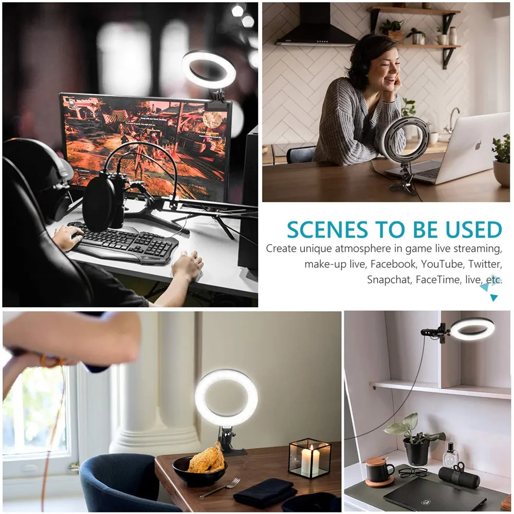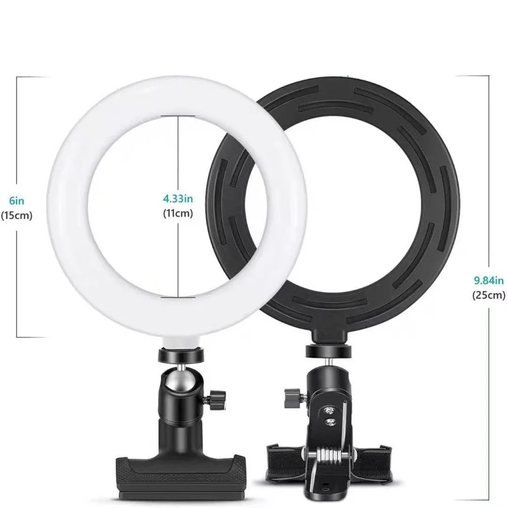 Приглушаемый светодиодный кольцевой светильник для селфи 6 дюймов, лампа с зажимом для компьютера, USB для селфи, для прямой трансляции, светильник для студийной видеосъемки