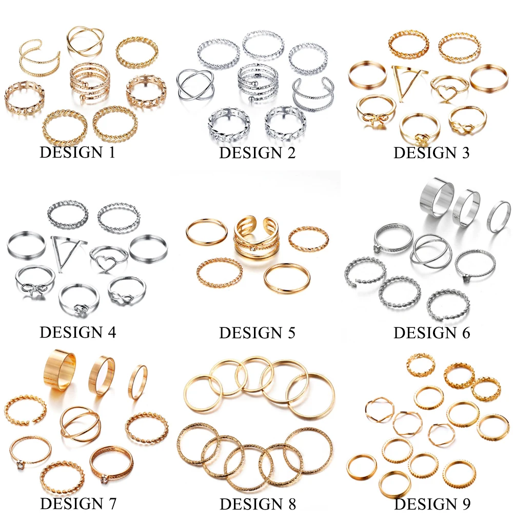Новинка, набор золотых и серебряных колец для женщин, Винтажное кол...
