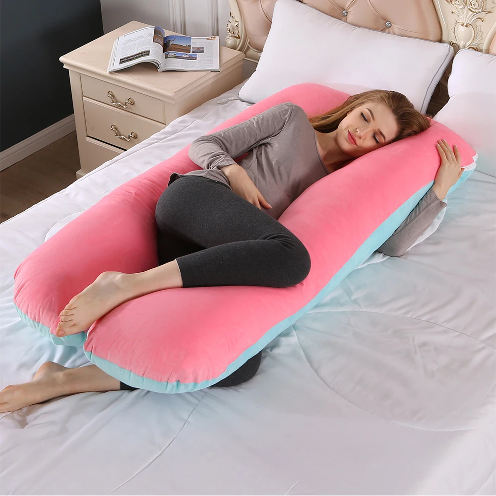Поддерживающая Подушка для беременных, Подушка U-образной формы с хлопковой наволочкой для женского тела для сна на боку