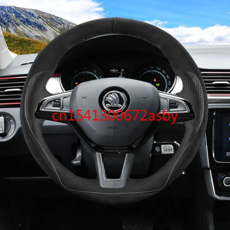 Чехол на руль для Skoda Octavia, кожа, замша, интерьер автомобиля