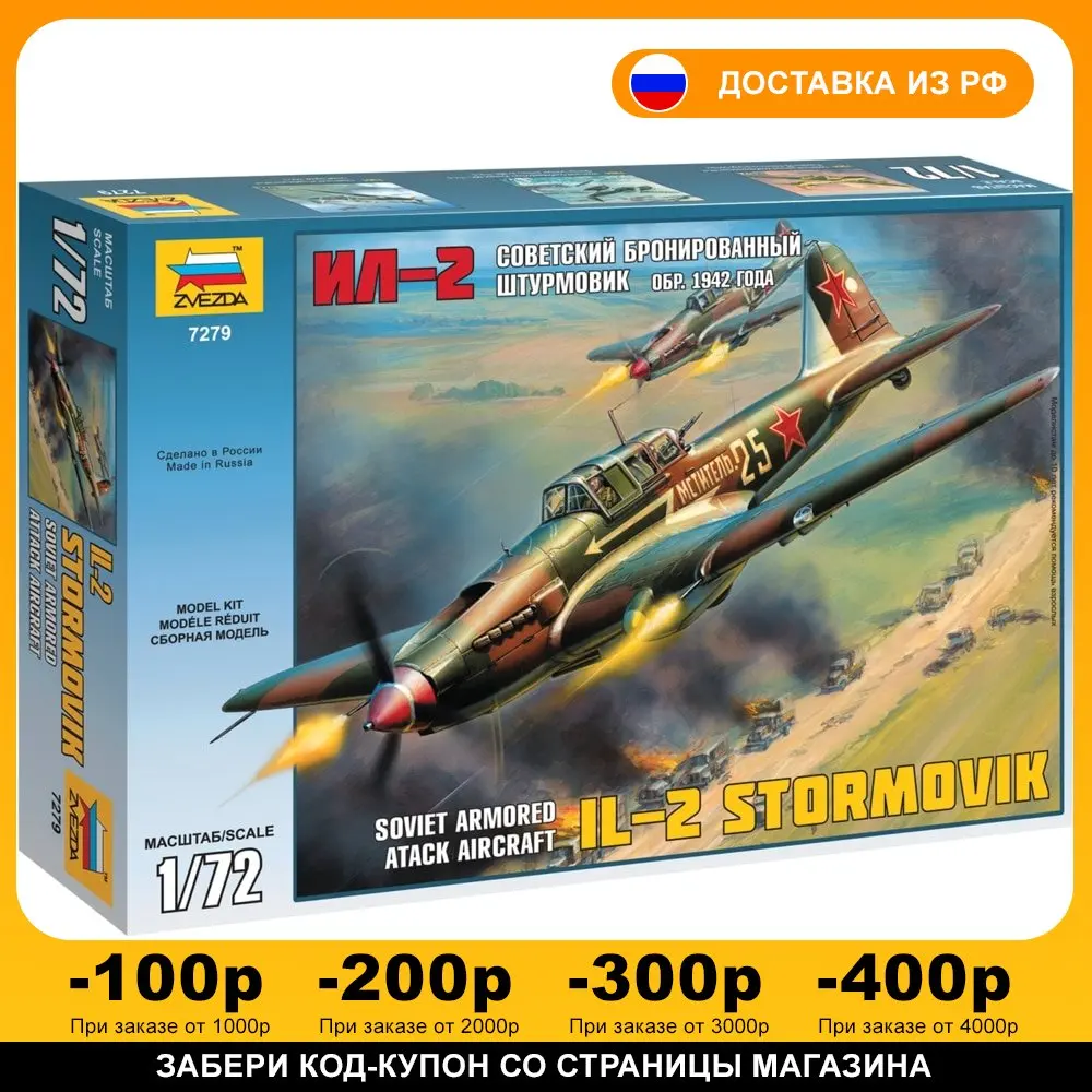 Модель для склеивания ЗВЕЗДА, САМОЛЕТ, Штурмовой советский Ил-2 образца 1942, масштаб 1:72