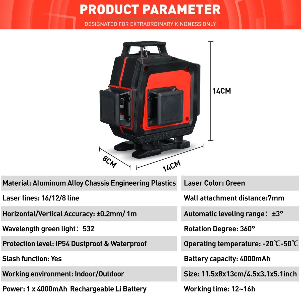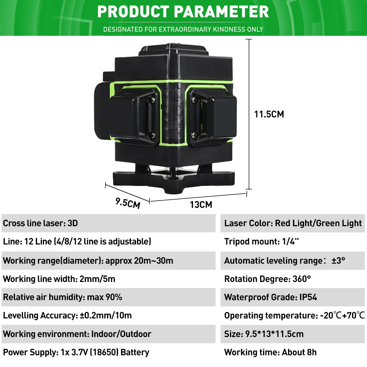 12Линия 360°Горизонтальный Вертикальный крест3Самовыравнивающийся лазерный уровень, супермощный лазерный луч