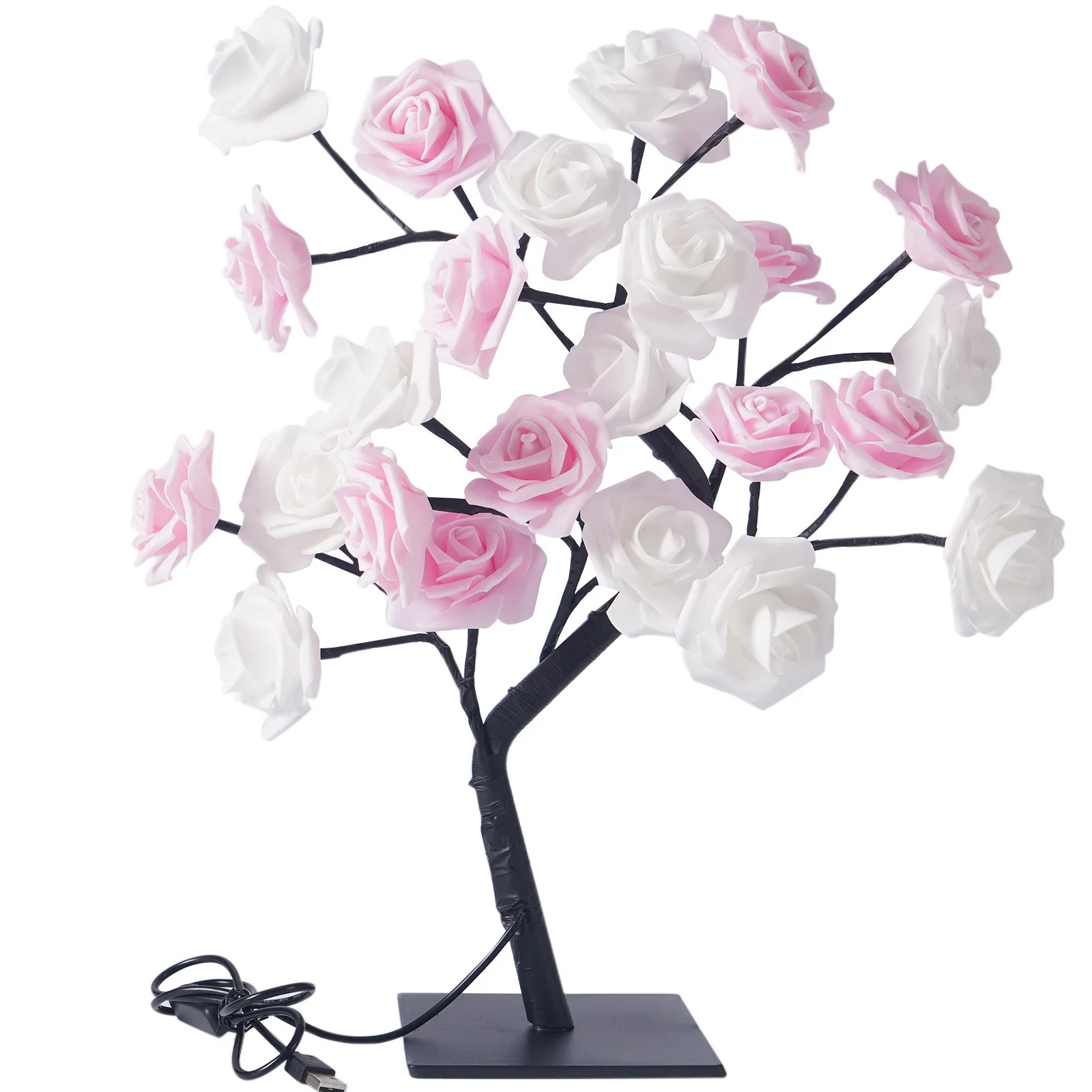 Светодиодная настольная лампа, ночник с USB-подсветкой в виде Розы, цветка, дерева, праздничное украшение для дома, декор для Рождества, свадьбы, спальни