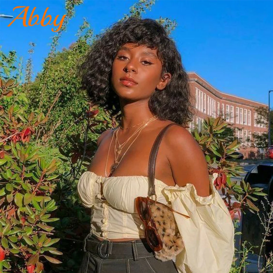 Парик Эбби кудрявый боб с челкой, перуанские кудрявые бомб, Коротки...