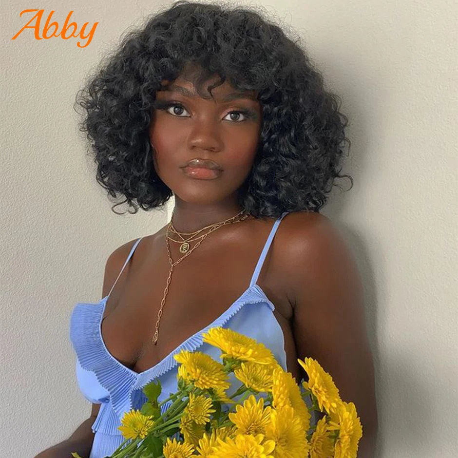 Кудрявые кудрявые парики боб с челкой монгольские глубокие кудрявые...