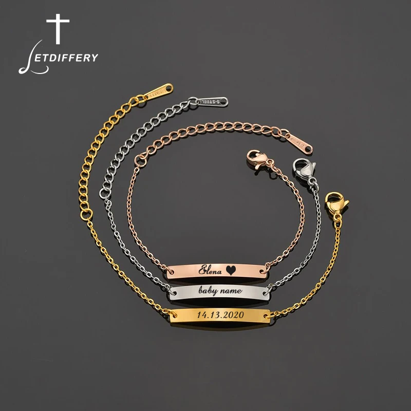 Letdiffery Пользовательское Имя ID бар браслет из нержавеющей стали регулируемая цепь для мальчиков и девочек, детские браслеты подарок на день рождения