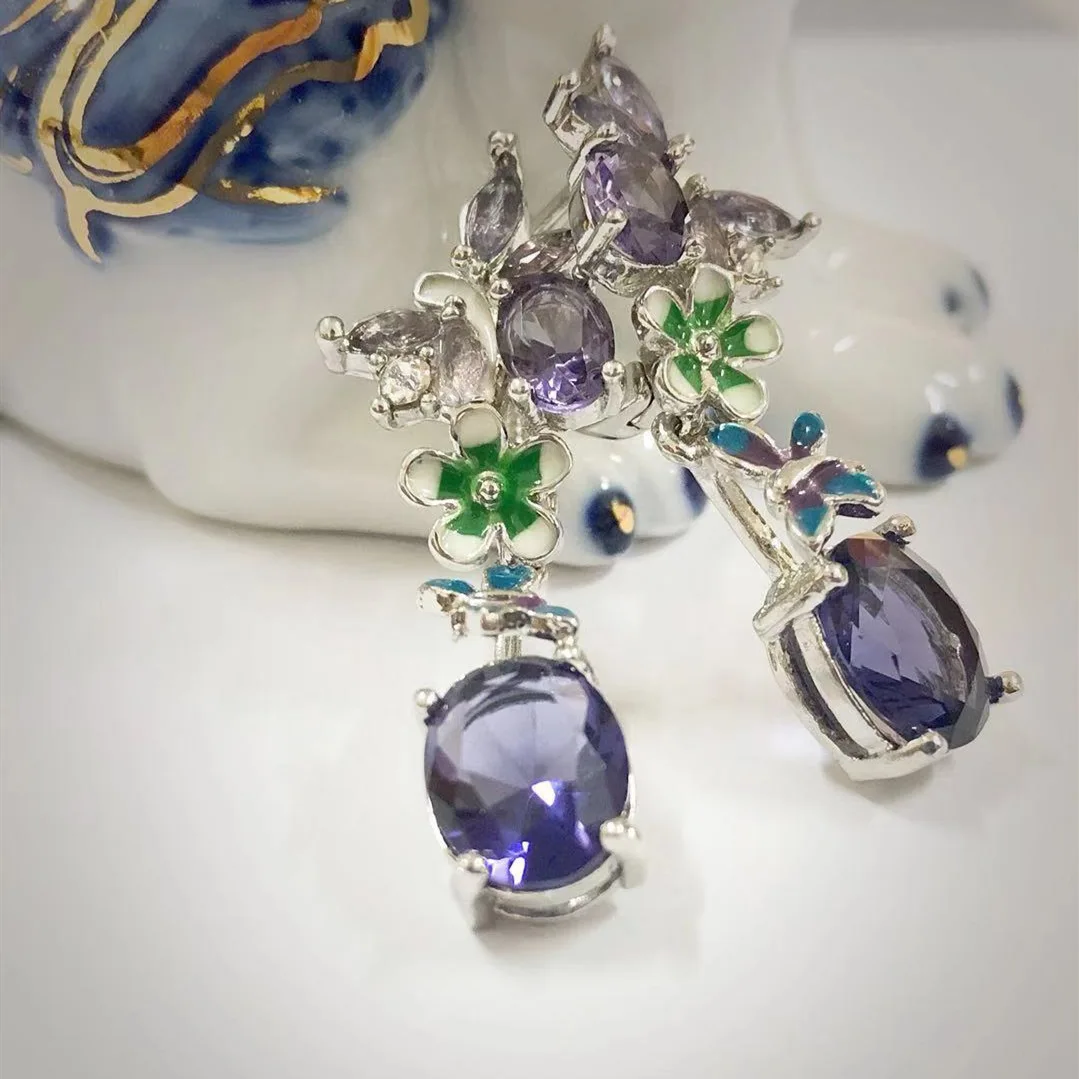 BAOSHINA Роскошные фиолетовые цветы циркон бабочка свадебные набор украшений для женщин серьги для девочек кольцо аксессуары женские ювелирные изделия