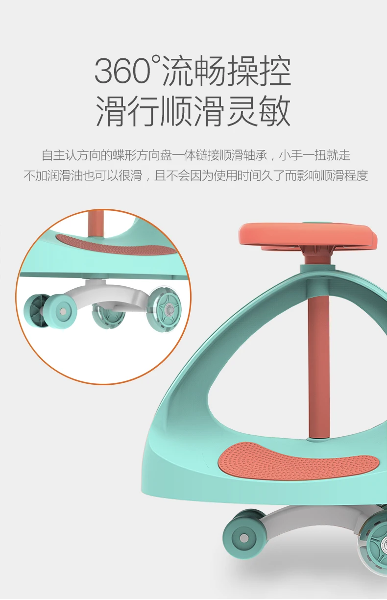 3."8" Руль, удобный захват, ультра-широкое сиденье, высокий коэффициент безопасности, гладкая кромка, более безопасный для детей.