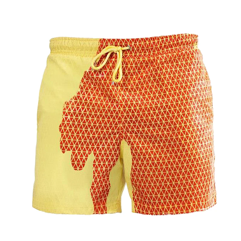 Летние мужские шорты для плавания, пляжные шорты с датчиком темпера...