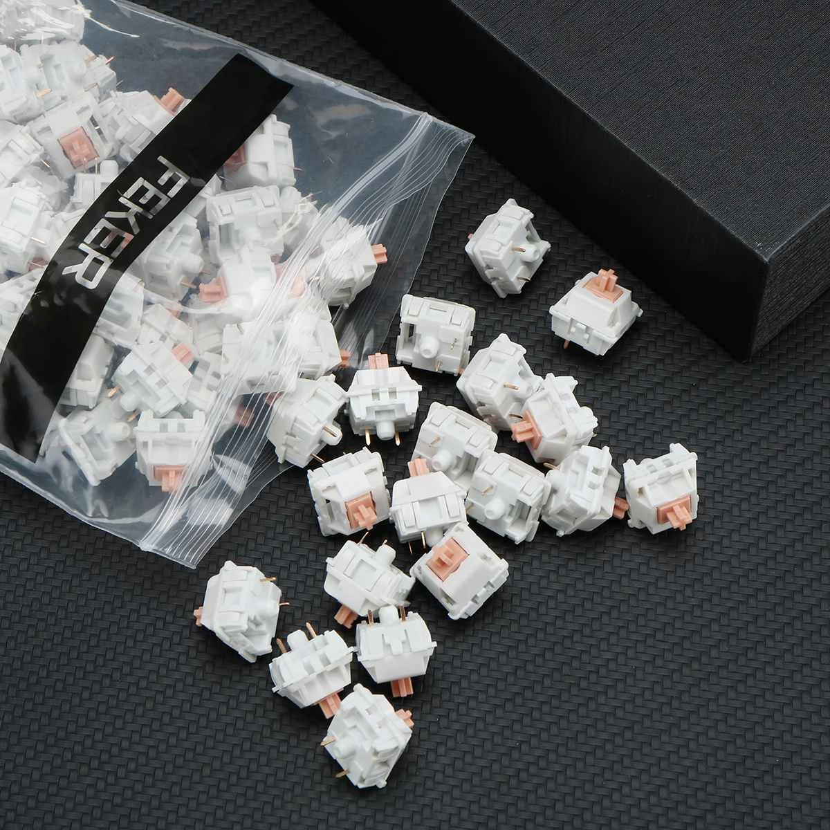 FEKER Holy Panda V2Стиль: тактильныеРабочая сила: 50 ± 5gfДавление: 58 ± 8gfPretravel: 2,0 ± 0,4 ммВ общей сложности путешествия: 3,3 ± 0,4 ммЦвет стебля: лососевыйВерхний корпус из поликарбоната и нижний корпус из нейлонаПосылка: 35/70/90/110 шт