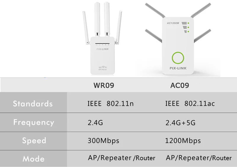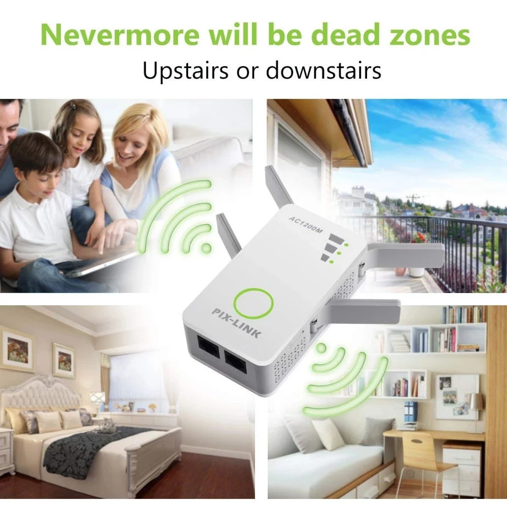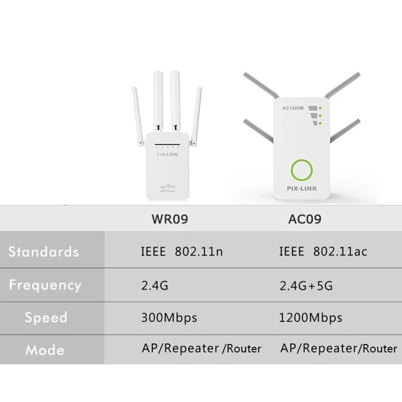 PIXLINK 300/1200Mbps Router расширитель Wi-Fi усилитель сигнала Беспроводной ретранслятор сигнала Dual Band 2,4/Wi-Fi 5 ГГц Диапазон Wi-Fi штекер в доме
