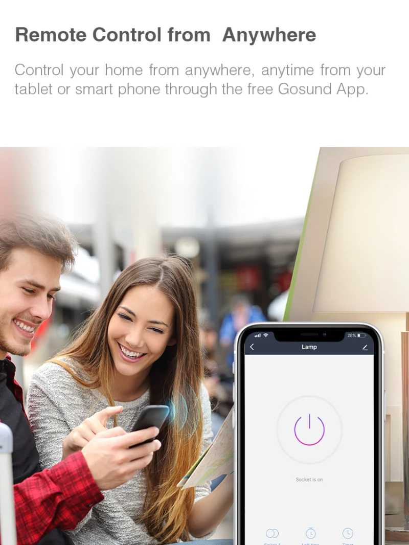 Ваша бытовая техника в любое время и в любом месте, и вы можете включить/выключить эти устройства через смартфоны, управляемые системой IOS или Android (приложение Gosund/Smart Life/TUYA).