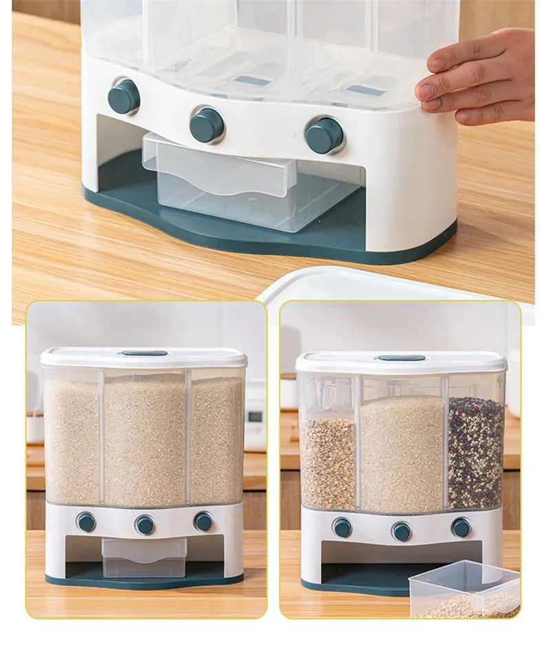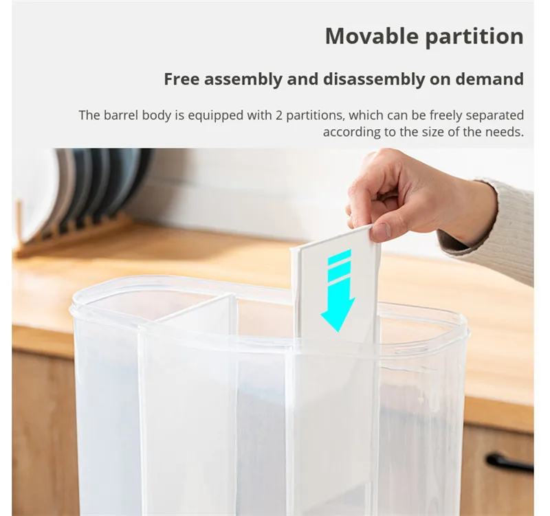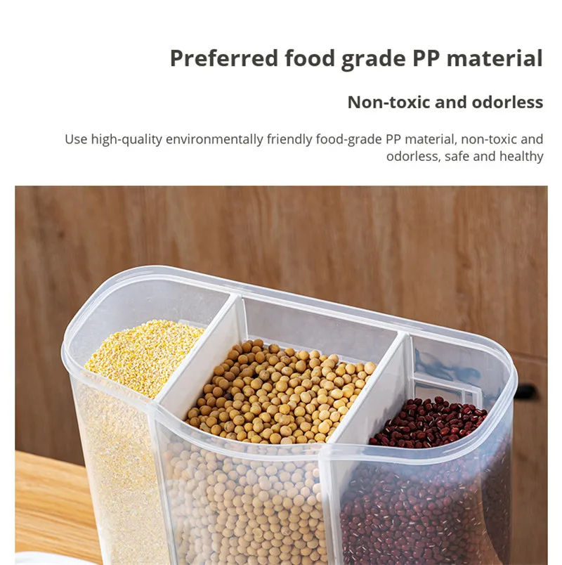 Особенности:[Без перфорации может быть настенный]Двухцелевой дизайн можно разместить на столе или повесить на стену, что является практичным и экономичным.[Герметичный с дизайном крышки и съемной крышкой]Защита от насекомых, защита от влаги и пыли[Предпочтительный пищевой полипропиленовый материал]Нетоксичный и без запаха, используйте Высококачественный Экологически чистый материал PP, нетоксичный и без запаха, безопасный и здоровый[Дизайн нажатия клавиш]По требованию нормирование зерна и зерна плавно и не заикается. Нажмите, чтобы взять зерно, не оставляя застой риса, каждый прием пищи имеет свежий вкус[Подвижный раздел]Свободная сборка и разборка по требованиюКорпус бочки оснащен 2 перегородками, которые могут быть свободно разделены в соответствии с размером потребностей.[Специальная внутренняя коробка с защитой от насекомых]Удобный и съемный, поставляется с защитой от жуков внутренней коробкой, так что это не легко выращивать жуков