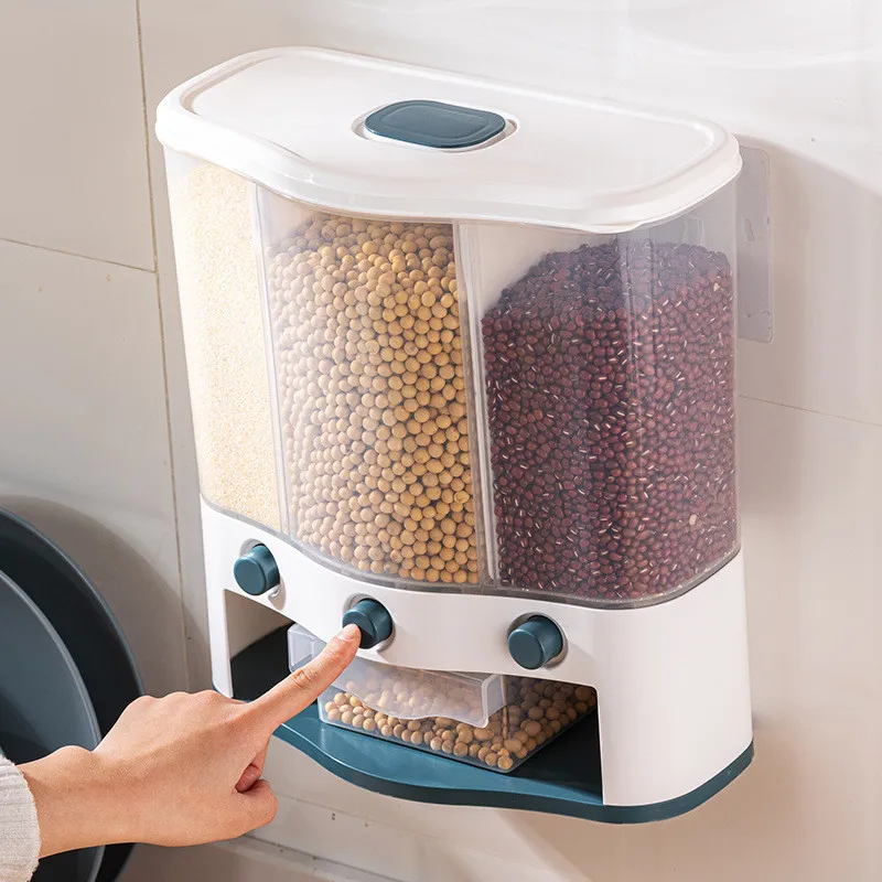 Кухонный пластиковый герметичный контейнер для хранения риса, настенный влагостойкий контейнер для хранения риса, бытовой Дозирующий контейнер для хранения зерна