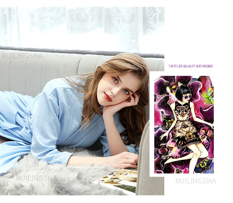 Халат вафельный Женский, модный купальный халат для ванной, пикантный пеньюар, халат для подружки невесты, на лето