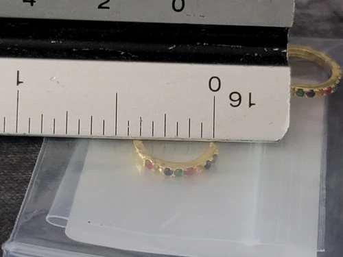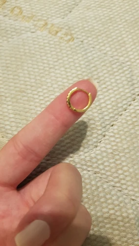 Товар прибыл в хорошее время, хорошо упакован. Выглядит так, как на фото, но меньше, чем я ожидала. Если бы у меня был пирсинг носа (сбоку), это был бы идеальный размер, но в ушах он выглядит намного меньше, чем на фото в добавке. В противном случае красивый набор сережек.