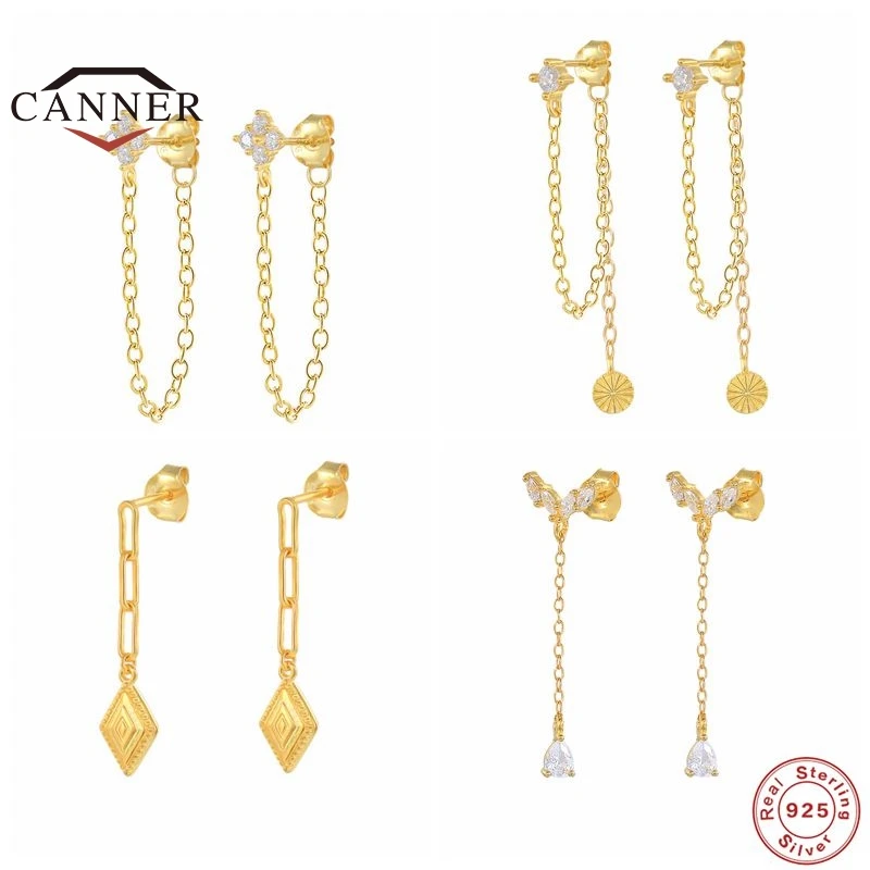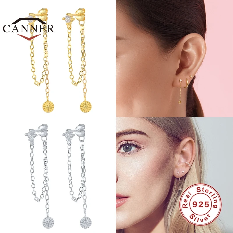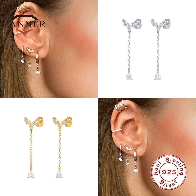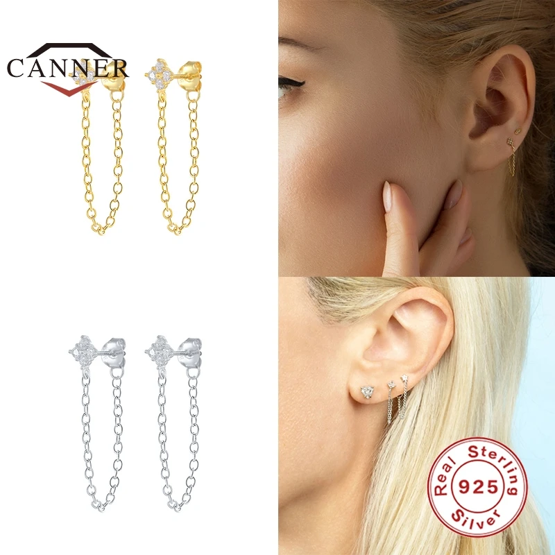 Автоклав реальные 925 стерлингового серебра цепь кисточкой, серьги со шпилькой, для женщин, маленький циркон пирсинг серьга серьги ювелирные изделия Pendientes