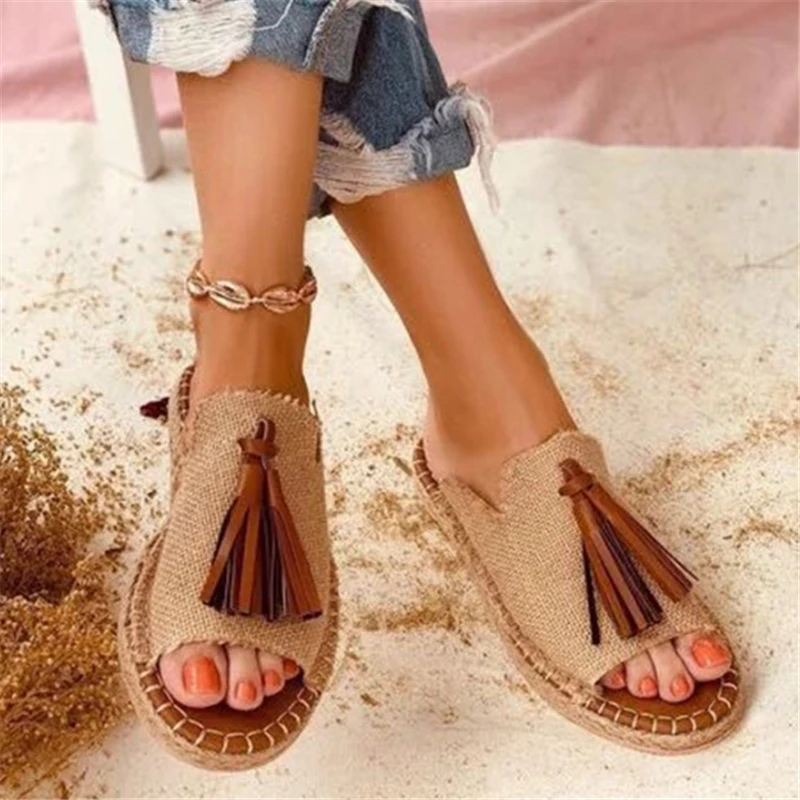 Женские сандалии JIANBUDAN с бахромой, шлепанцы на плоской подошве, летняя удобная обувь, Повседневные тапочки, большие размеры