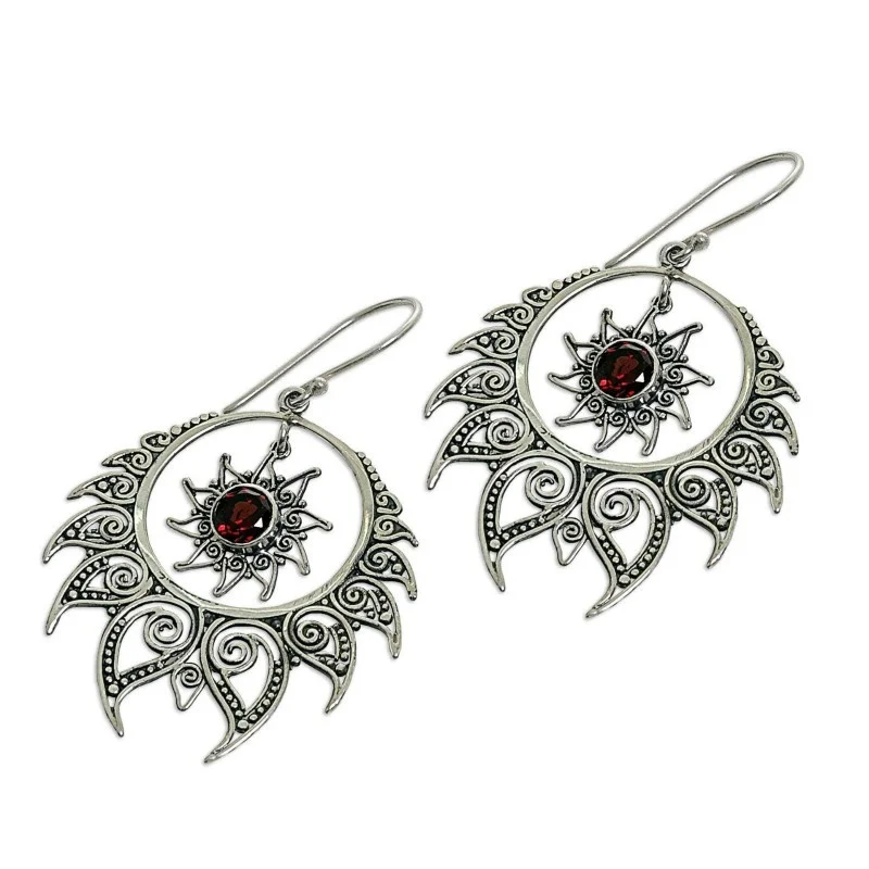 Винтажные серебряные серьги, индуистская Шива огненные серьги, подвески, натуральный рубин, женские серьги, ювелирные изделия в подарок