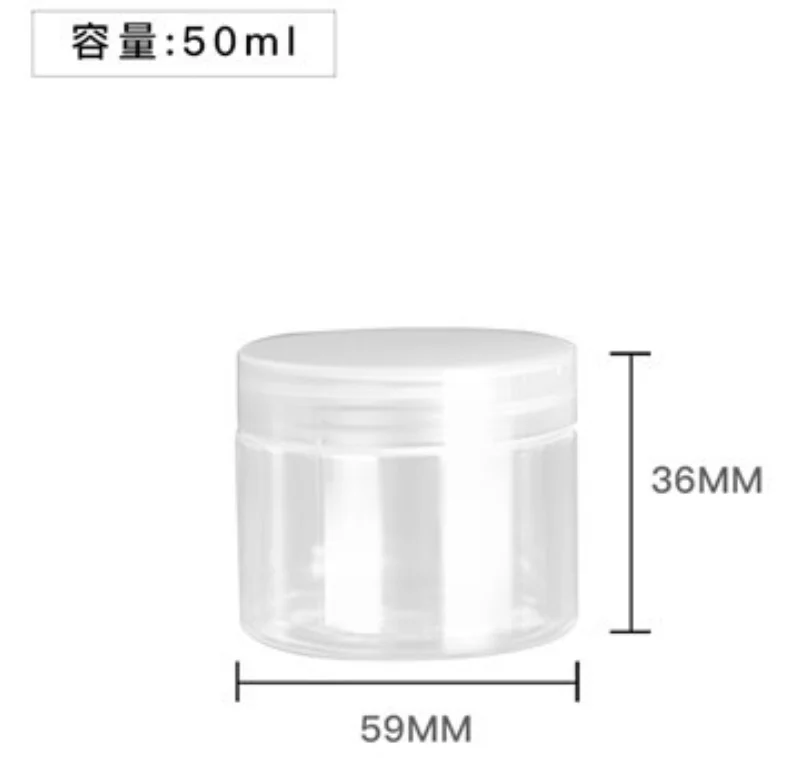 Пластиковая банка с крышками 50 шт.лот 50 г, винтовой жестяной прозрачный контейнер, пустой косметический крем, пудра, кастрюля, коробка для макияжа