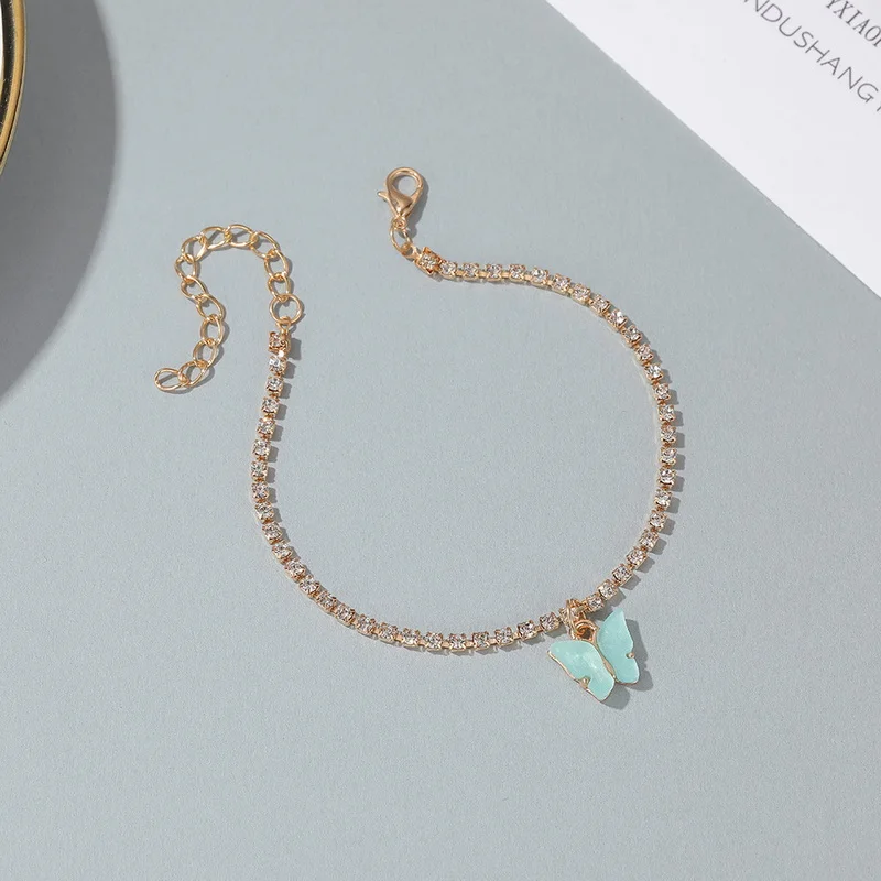 Ножные браслеты-бабочки для женщин, цепочка-анклет с подвесками в виде Стразы для девушек, летнее пляжное Ювелирное Украшение