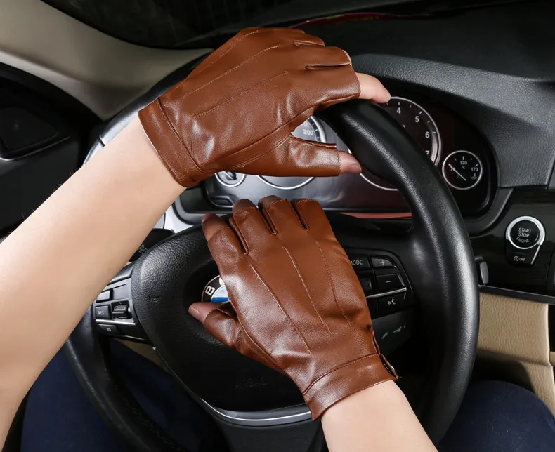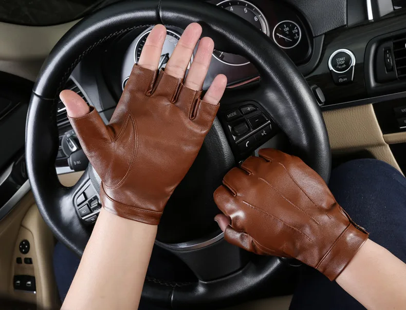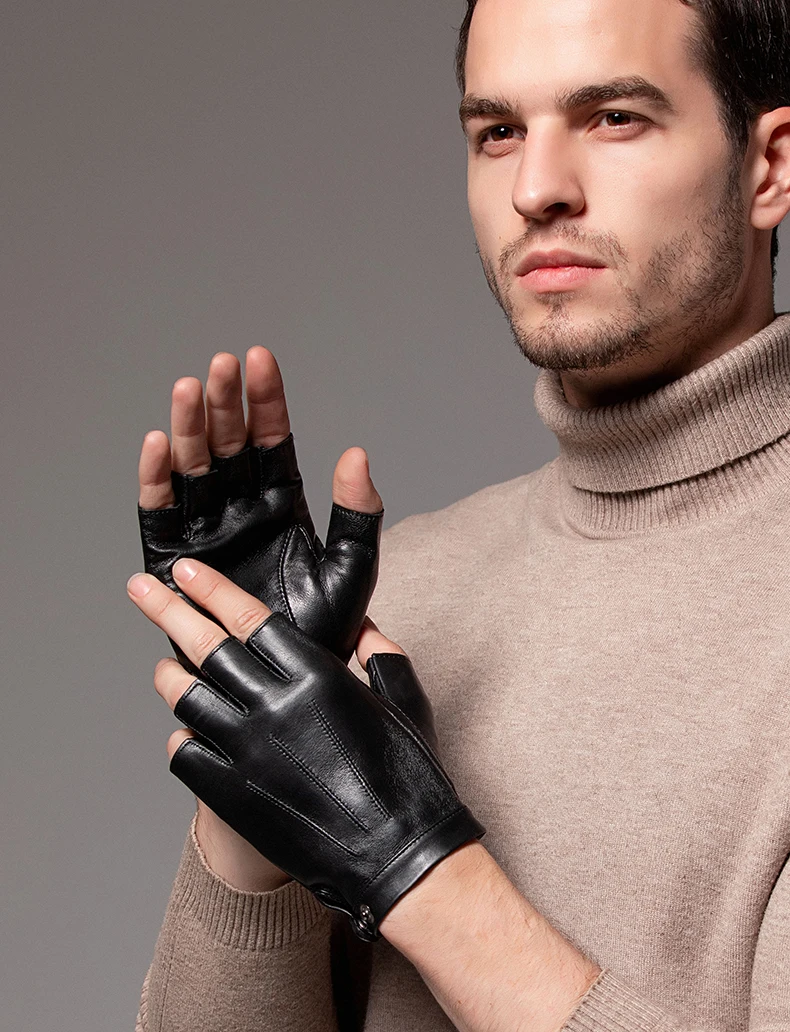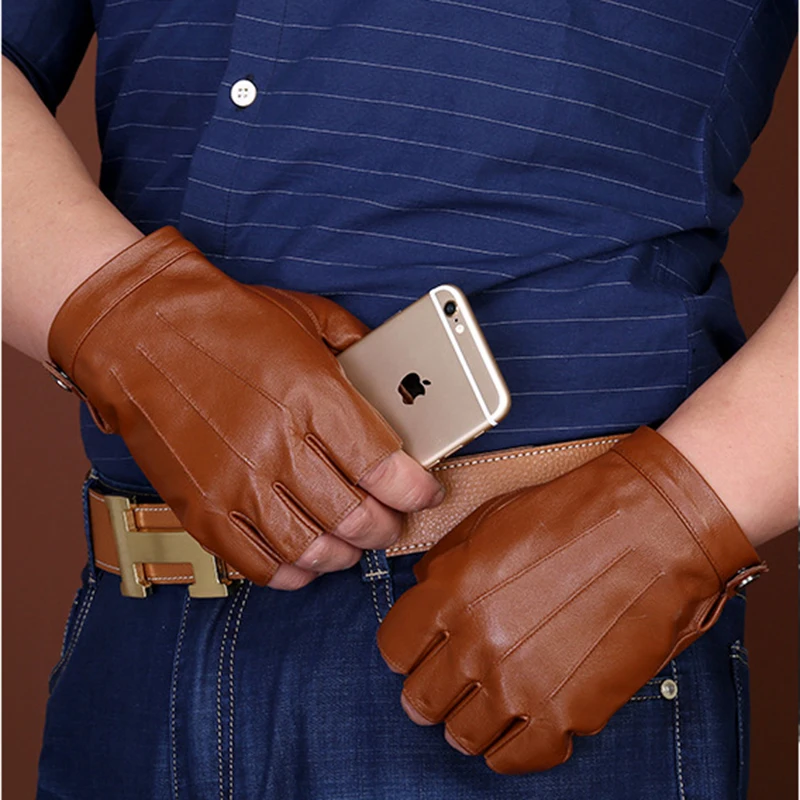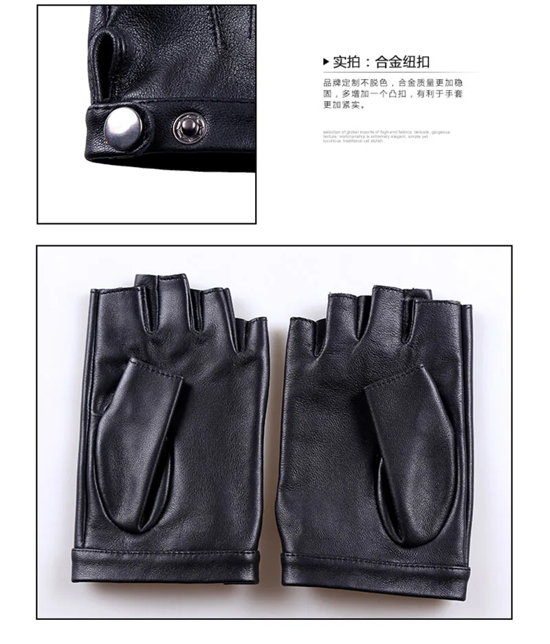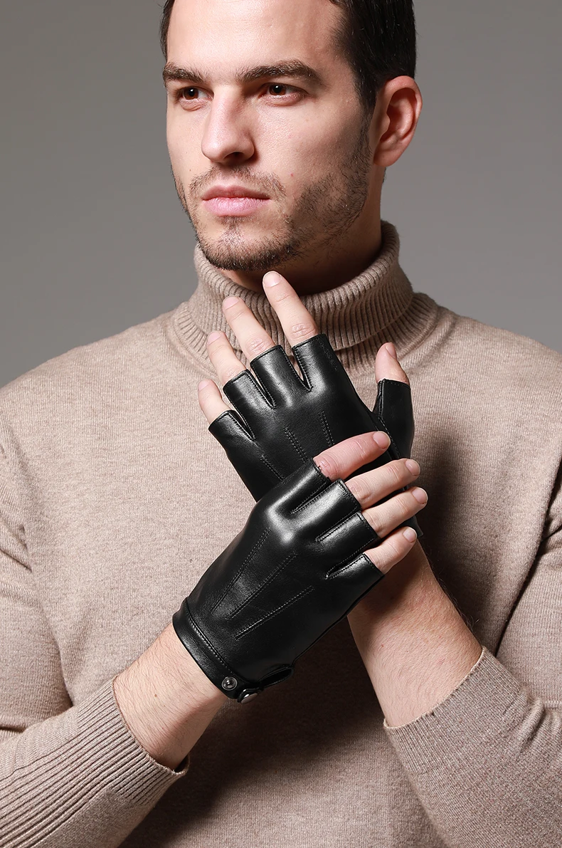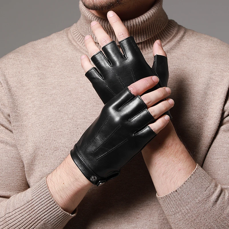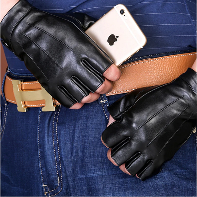 Перчатки мужские из натуральной кожи, тонкие короткие перчатки с открытыми пальцами, облегающие летние спортивные митенки из козьей кожи для фитнеса, вождения, езды на велосипеде