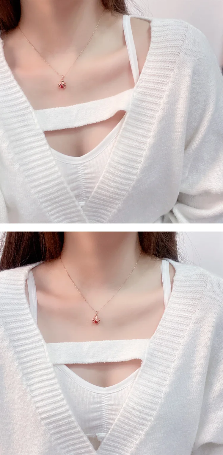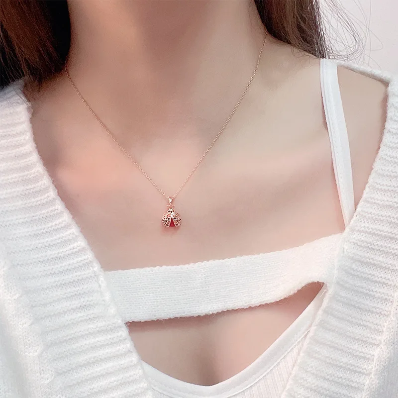 Цепочка MIQIAO с подвеской божья коровка с покрытием из розового золота и фианитами, ожерелье для женщин, свадебный подарок для друзей, винтажная бижутерия в стиле бохо