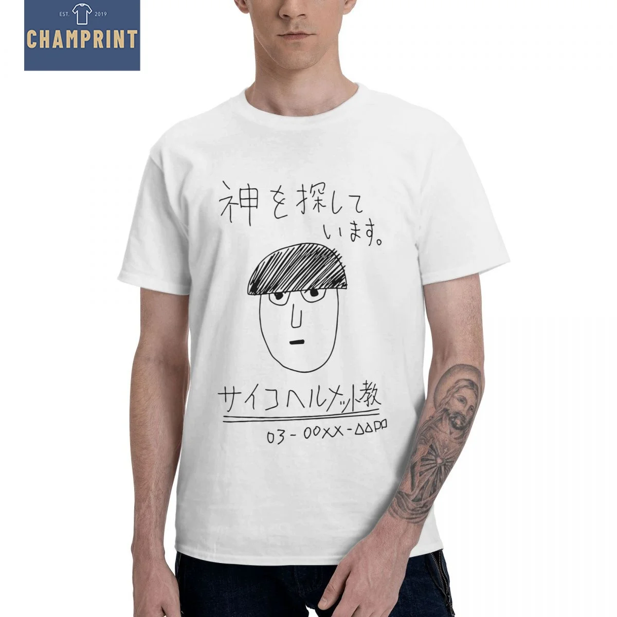 Мужская футболка Psycho (милый чудак шлем культ Mob Psycho (милый чудак 100 натуральный хлопок футболка с коротким рукавом с рисунком из аниме футболки без рукава, детское платье с круглым вырезом, одежда подарком для друзей и близких