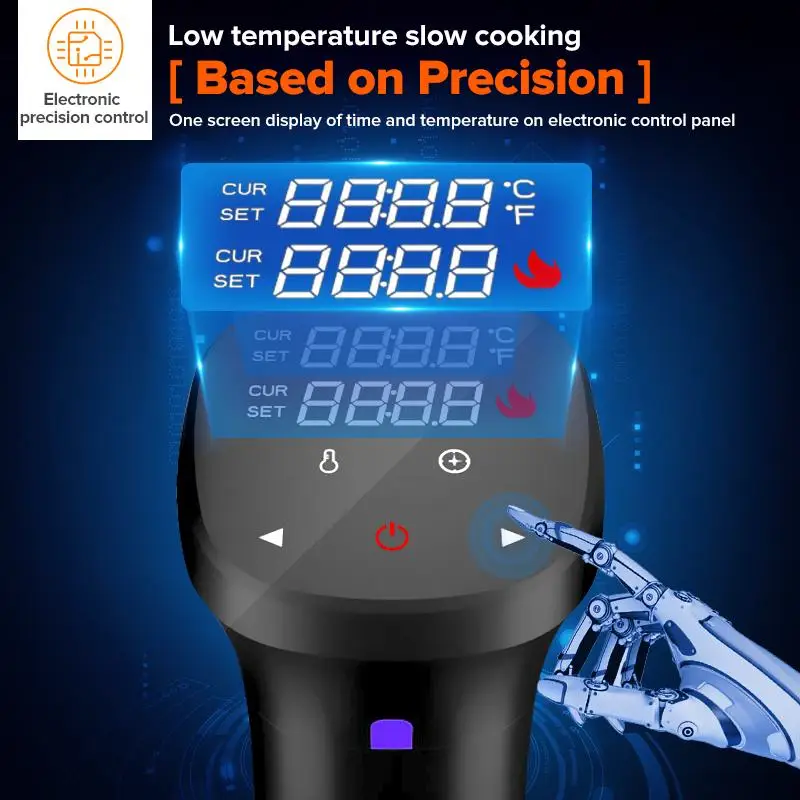 Погружной циркулятор 1800 Вт с ЖК-дисплеем, медленная готовка с функцией Sous Vide, водонепроницаемость IPX7