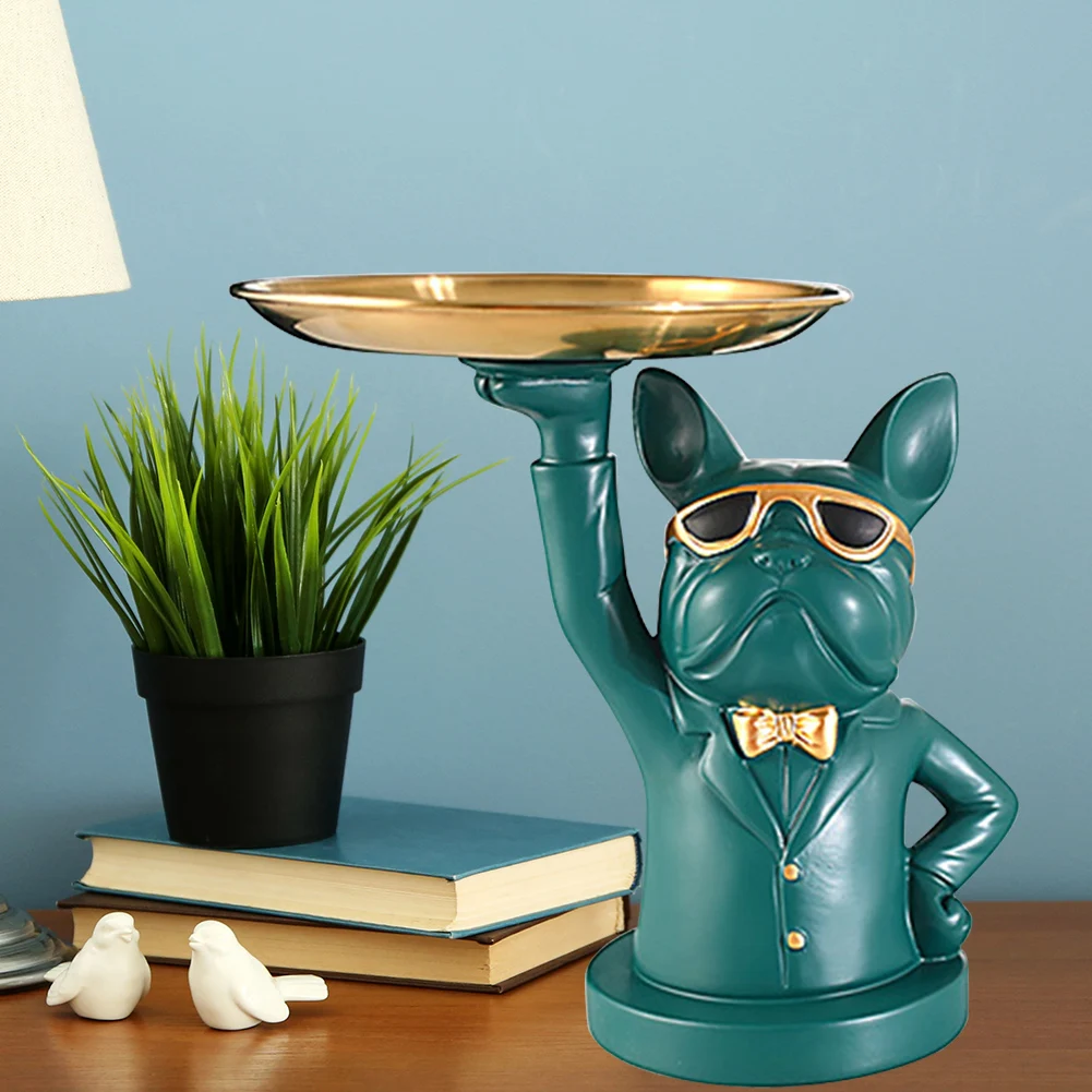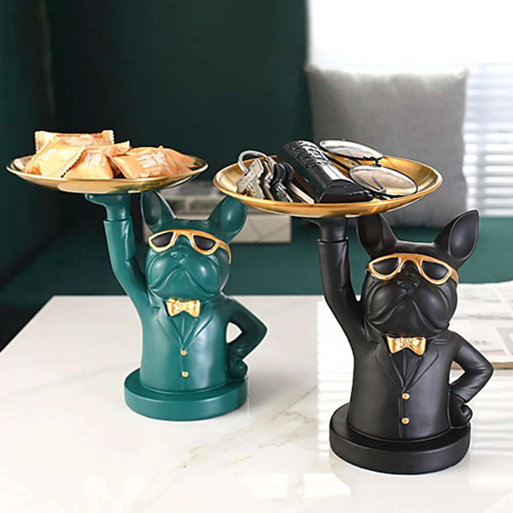 Роскошная статуэтка в скандинавском стиле из смолы, статуэтка для хранения бульдога, фруктов, закусок, конфет, поднос для ключей, тарелка для очков, скульптура, домашний декор