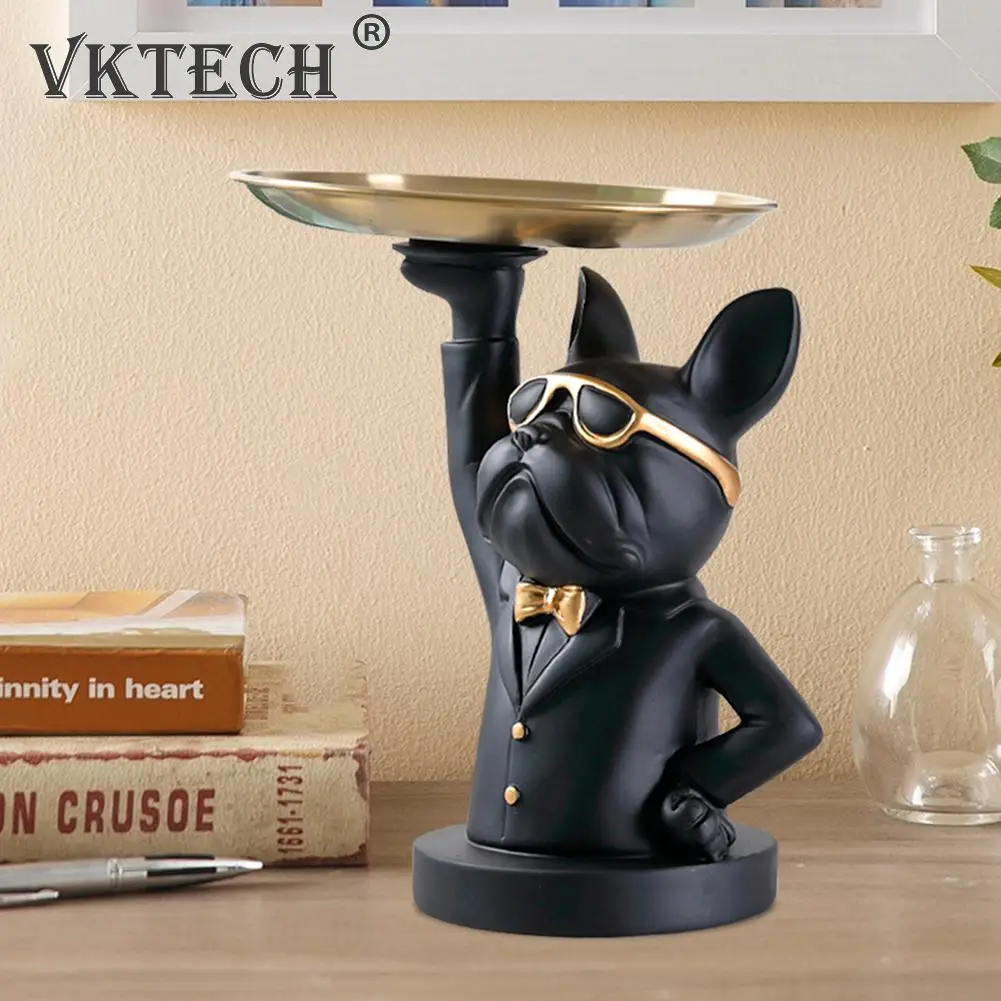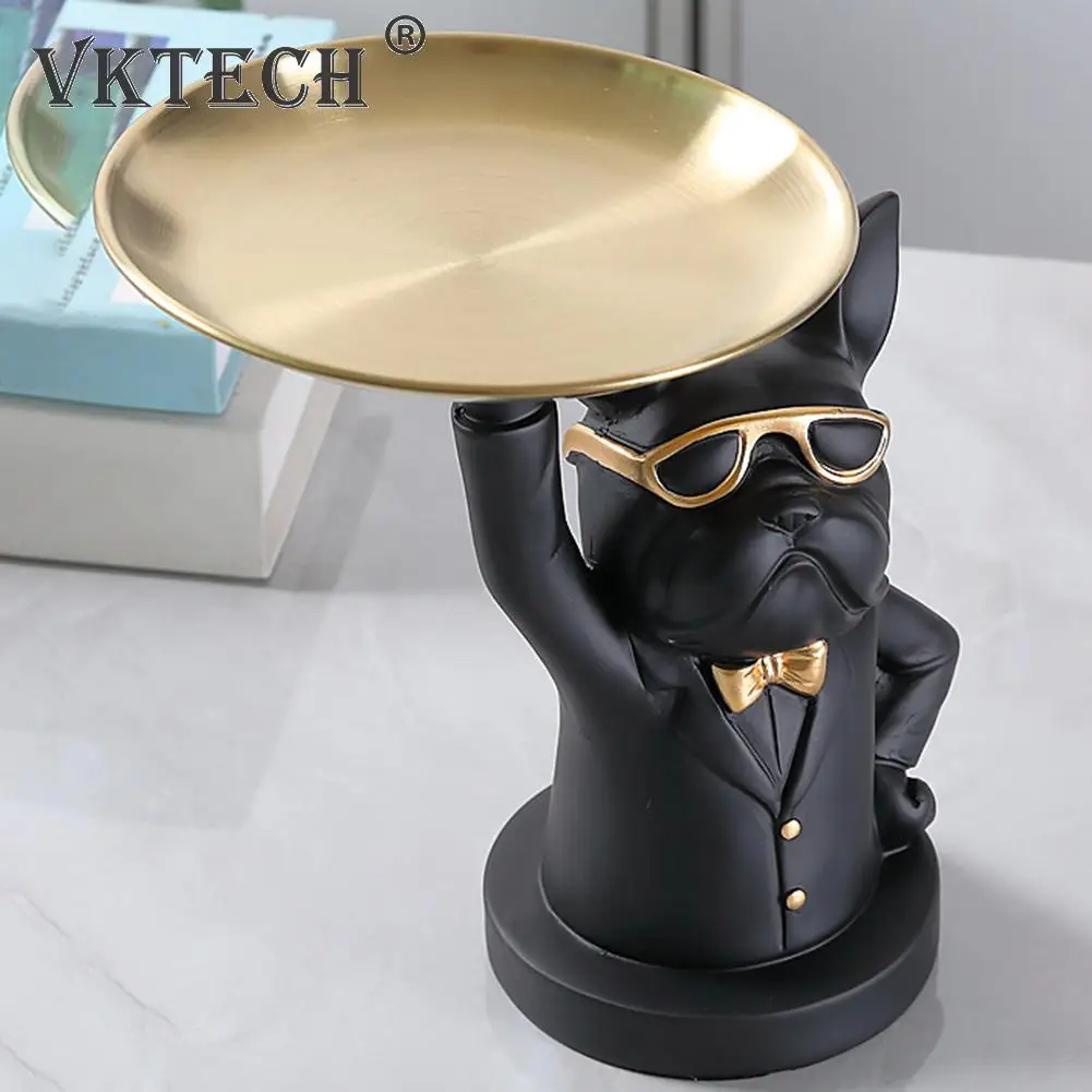 Статуя французского бульдога из смолы, поднос для хранения мелочей ...