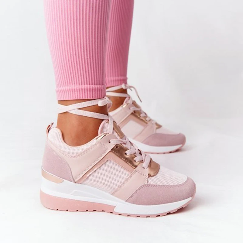 Женские кроссовки со шнуровкой, спортивная обувь на танкетке, Женск...