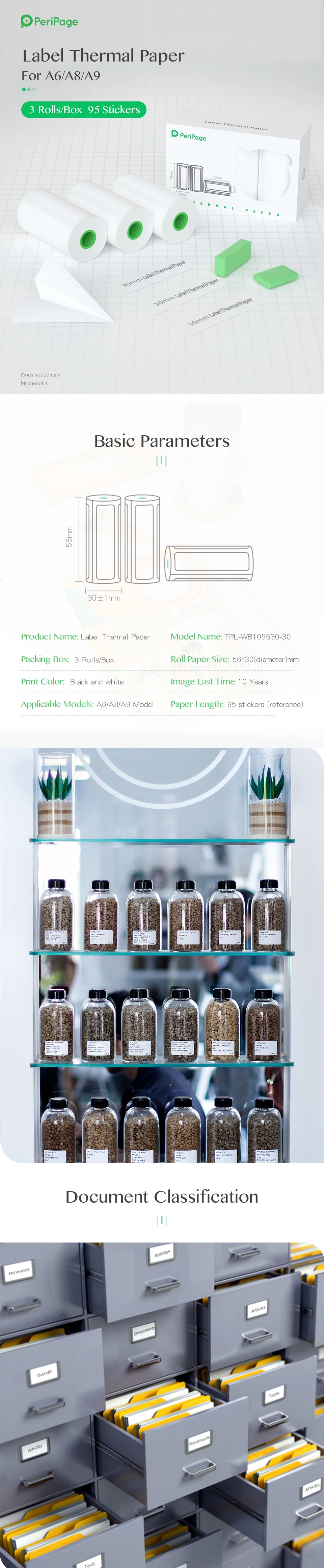 PeriPage 56x30 мм 10 лет термобумага записывающая бумага для термокарманного мини-принтера A6 A8 Papier Imprimante Thermique