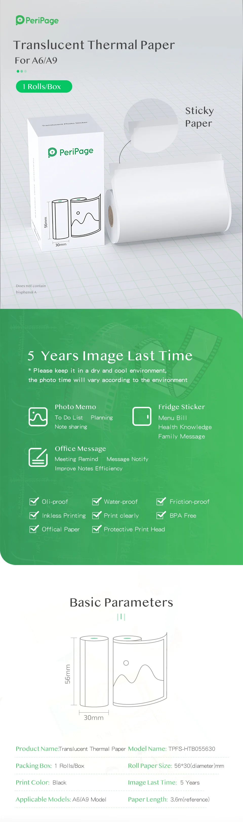 PeriPage 56x30 мм A6 термобумага этикетка бумажный стикер бумажная наклейка бумага для термокарманного мини-принтера A6 A8 Foto Papeles Termicos Etiqueta