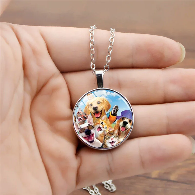 Собака собирать селфи в животном круг стекло кабошон ожерелье серьги-гвоздики набор браслетов всего 4 шт. подарочный набор ювелирных изделий