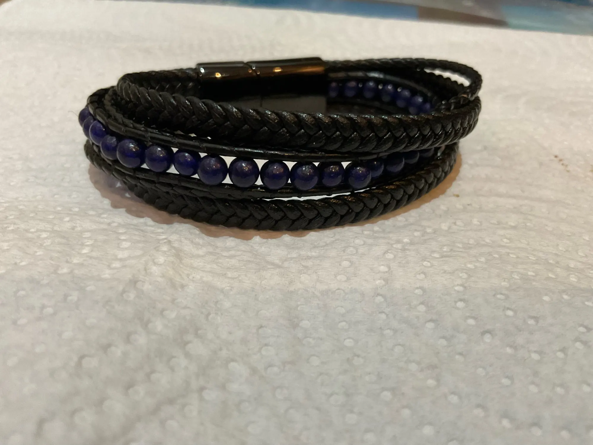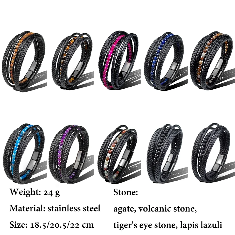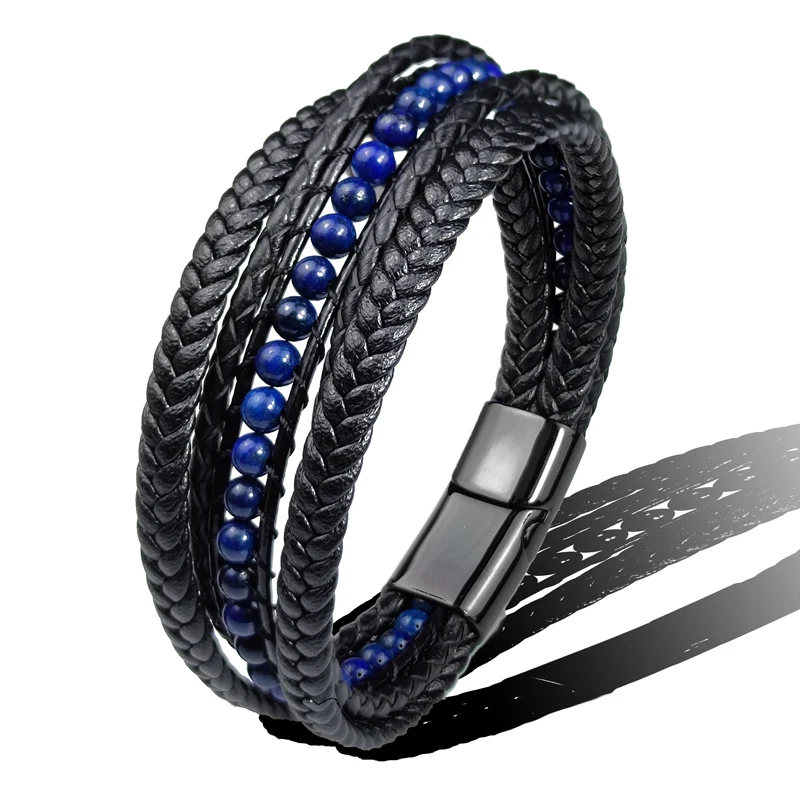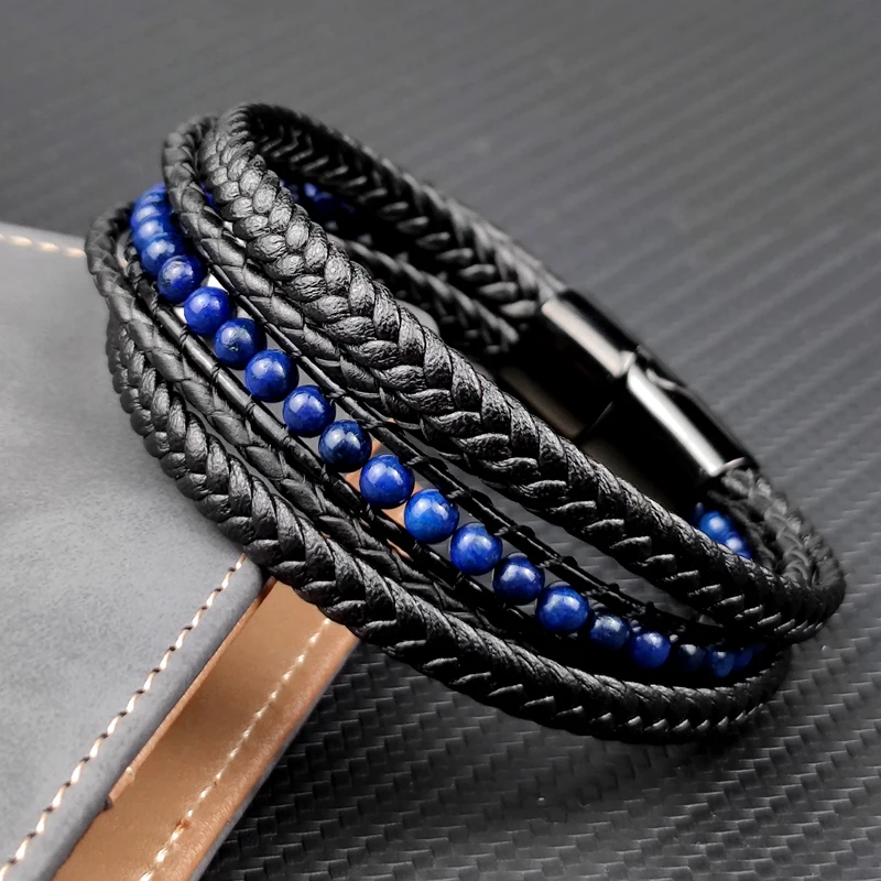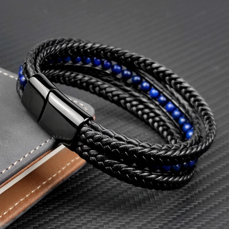 Мужской браслет из натуральной кожи Lapis lazuli бисерные браслеты мужской моды в стиле "хип-хоп" водонепроницаемые украшения застежка из нержавеющей стали, браслет