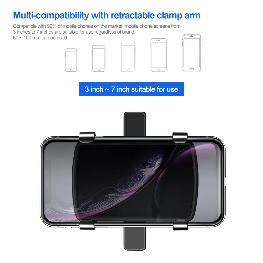 Спецификация: Цвет: черный Материал: АБС-пластик Подходит: телефон 3-7 дюймов Место установки: зеркало заднего вида автомобиля, приборная панель, солнцезащитный козырек