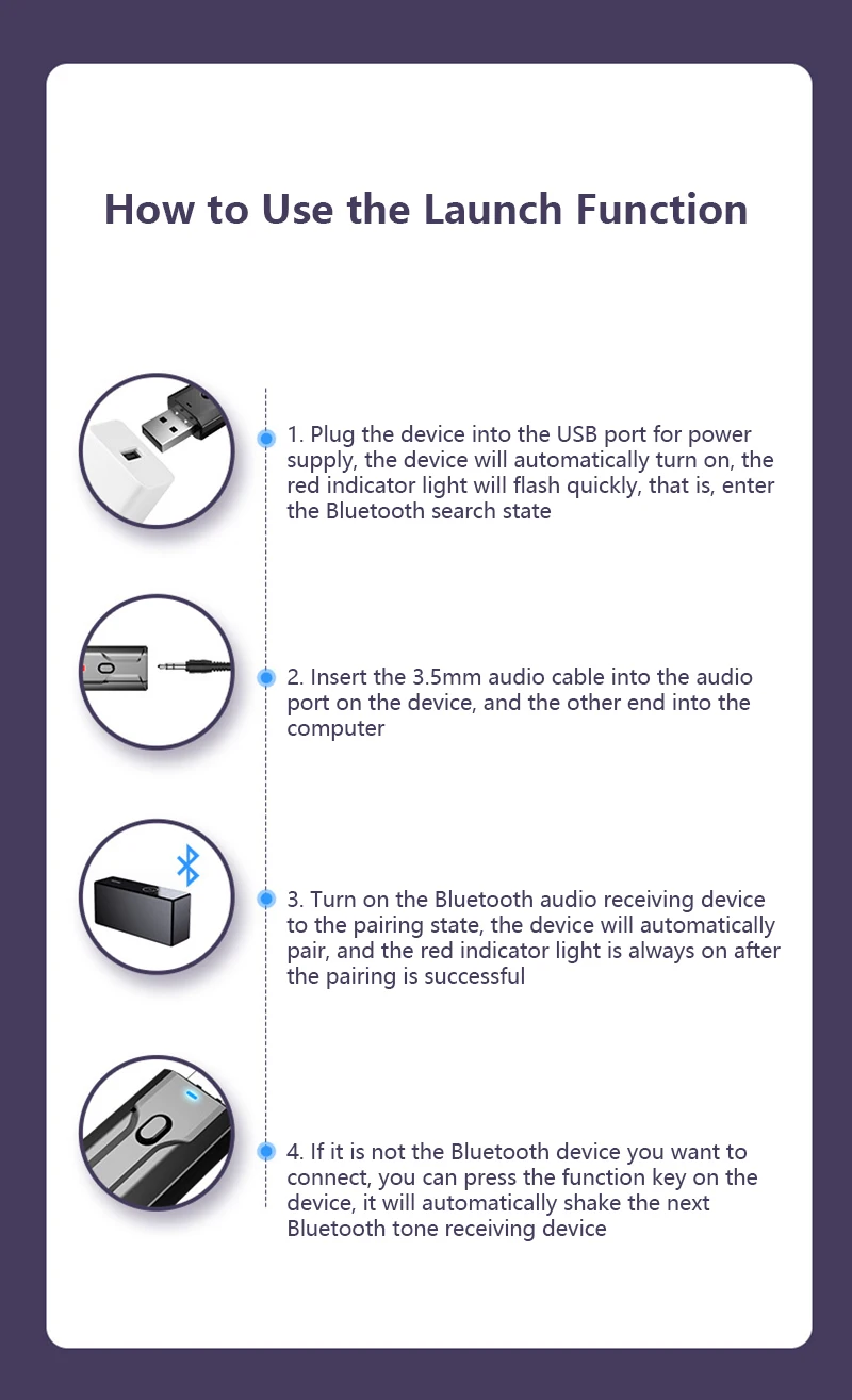 5. Широкая Совместимость: с помощью прилагаемого 3,5 мм кабель с данным приемником передатчик адаптер может широко использоваться на вашем автомобиле, компьютера, ноутбука, домашней стереосистеме, бумажное полотенце, кабель для наушников, смартфон, Mp3 проигрыватель компакт-дисков, И т. д.