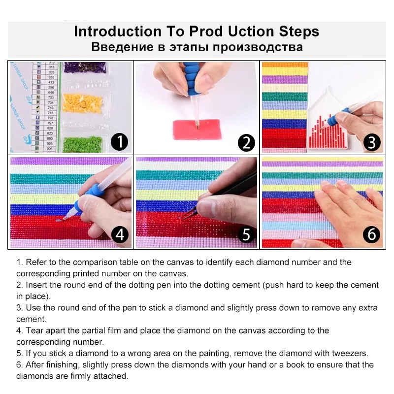 Мы будем усердно работать, чтобы сделать лучшую алмазную картину! Наши алмазные картины-это полуфабрикаты, не включая фоторамки. Мы предоставим вам все инструменты для вставки алмазных картин. Вы должны заполнить его самостоятельно.В комплект входит:-Ткань напечатана с дизайнерскими рисунками-Цветные бриллианты-Точечная ручка-Сверлильный диск, воск, пинцетДополнительные пластиковые пакеты для хранения и сортировки