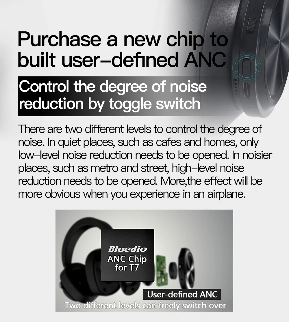 Bluetooth-наушники Bluedio T7 с активным шумоподавлением, беспровод...