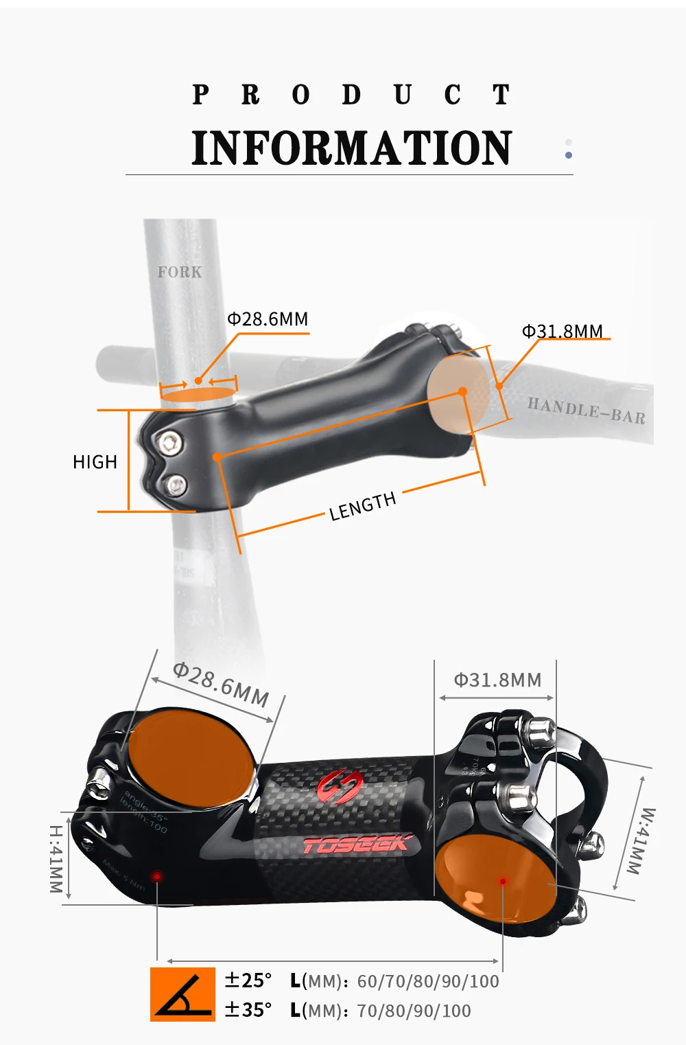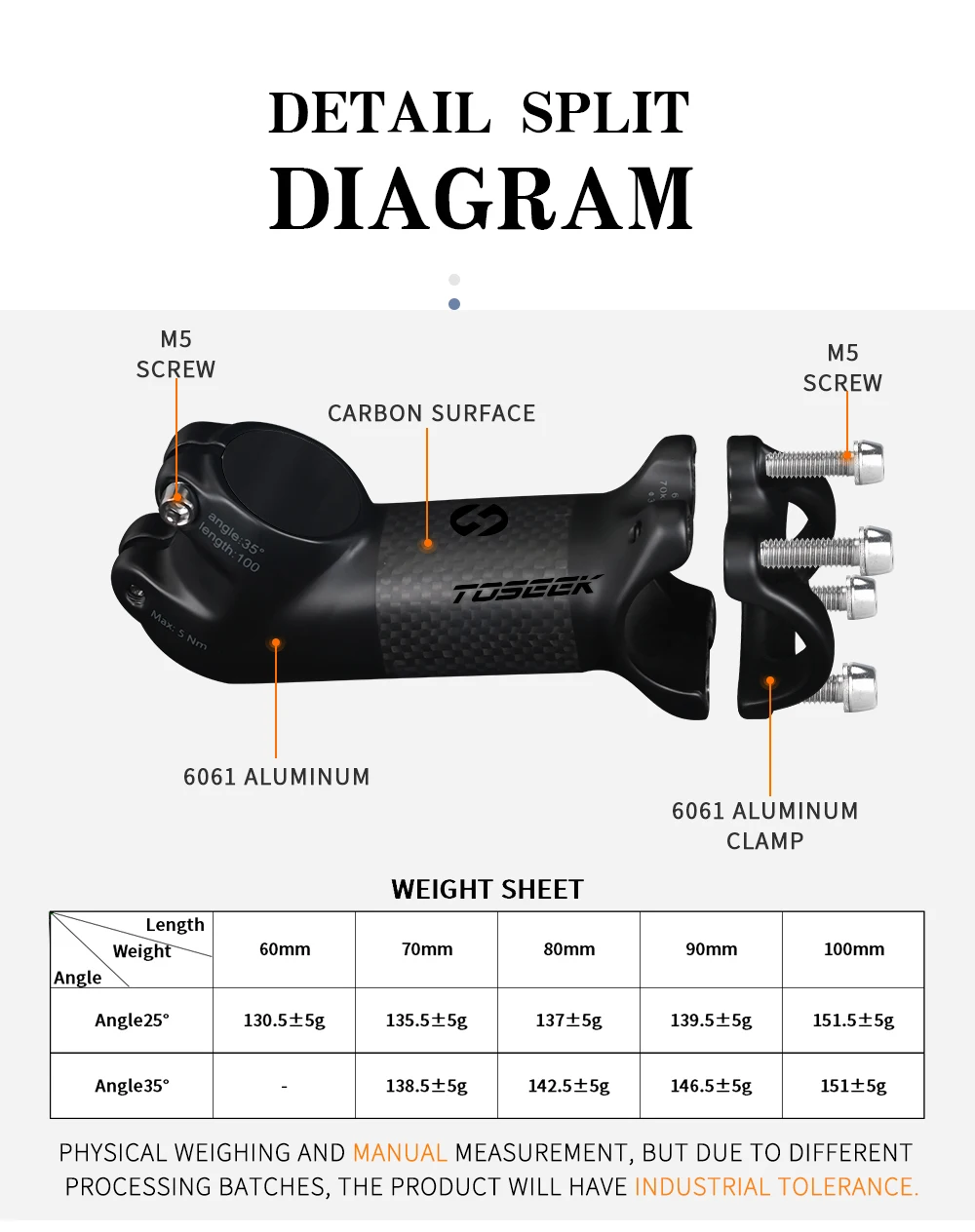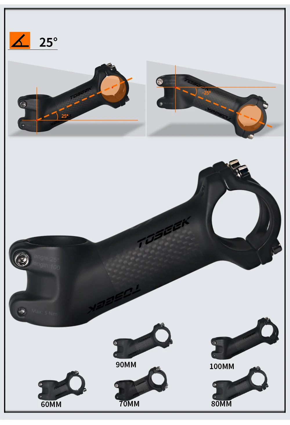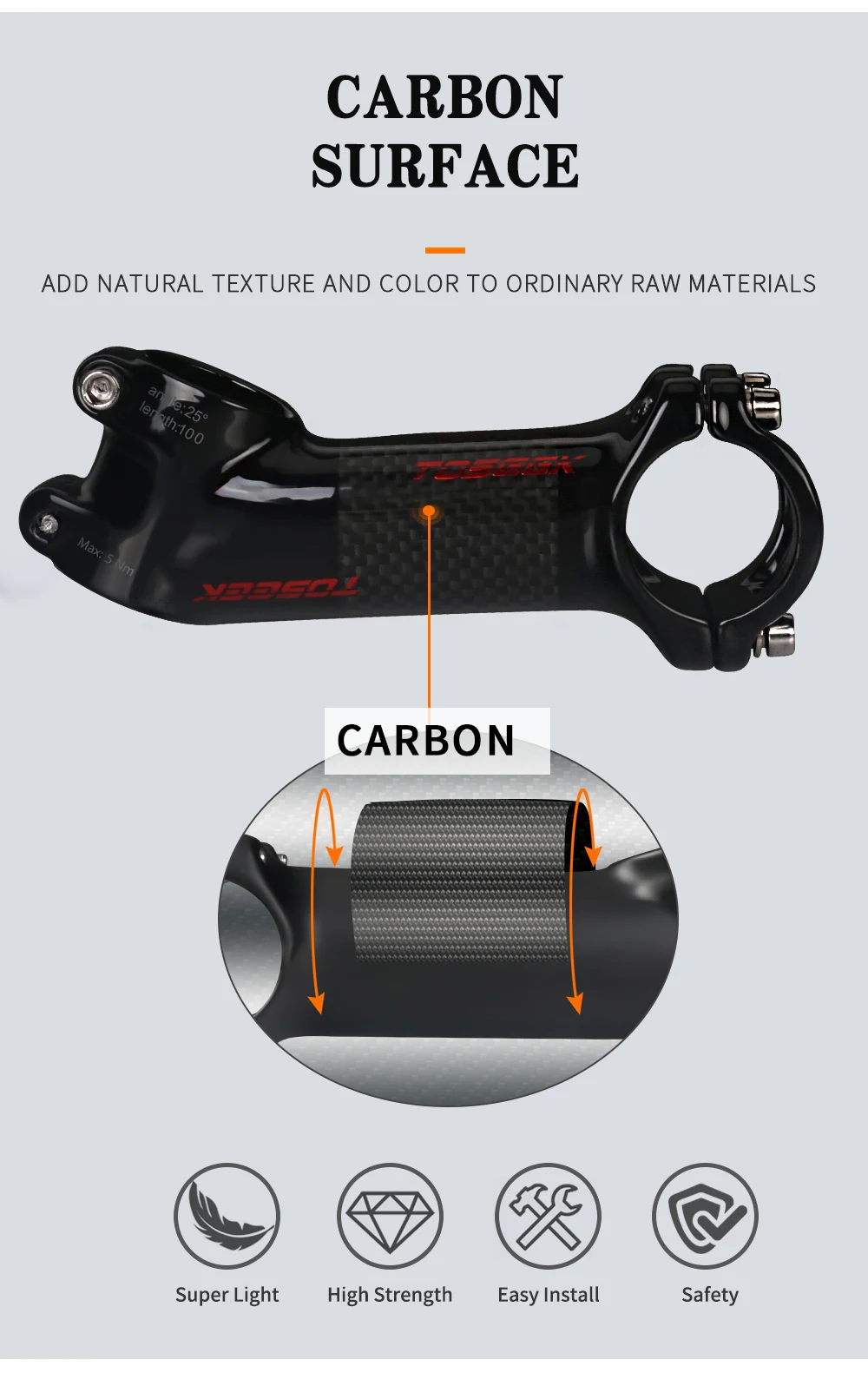 Вынос руля велосипеда Toseek из углеродного волокна, 10172535 градусов, 31,8 мм, 60708090100110 мм