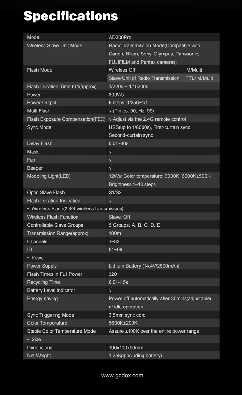 Вспышка Godox AD300 Pro универсальная, 300 Вт, TTL, для камер Canon...
