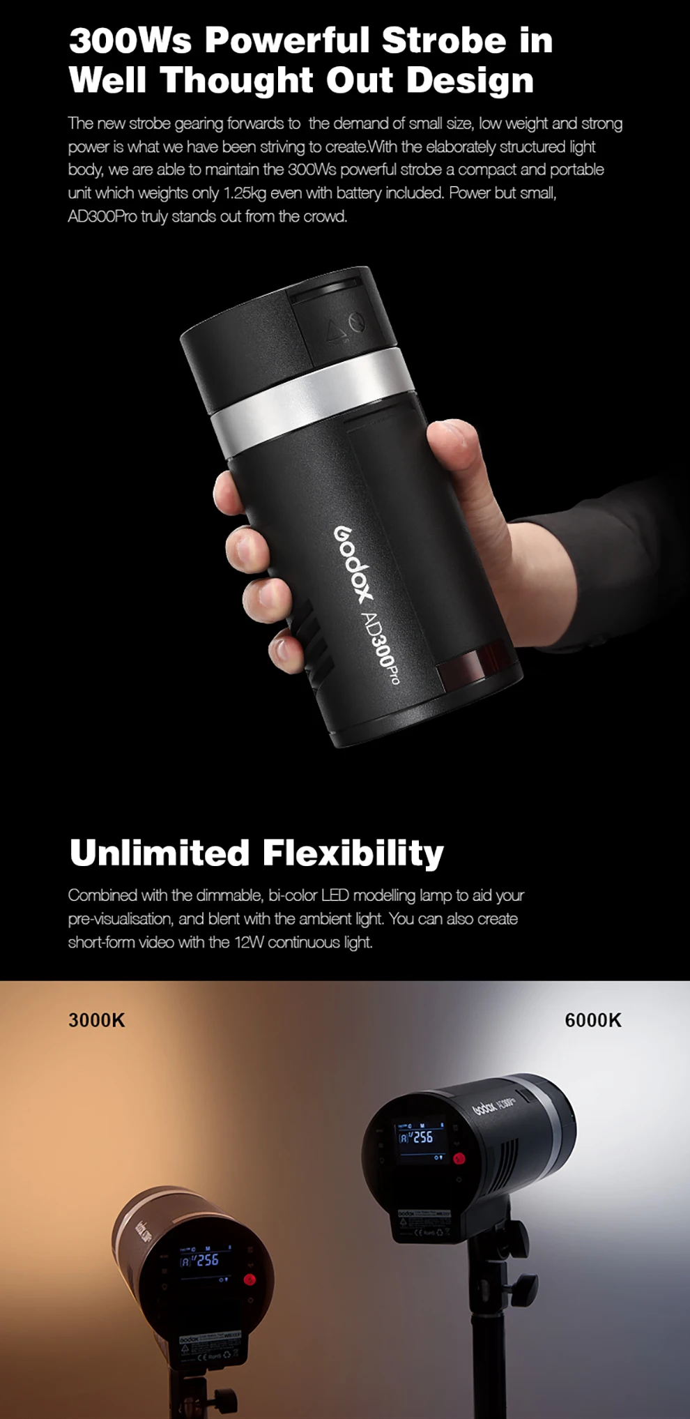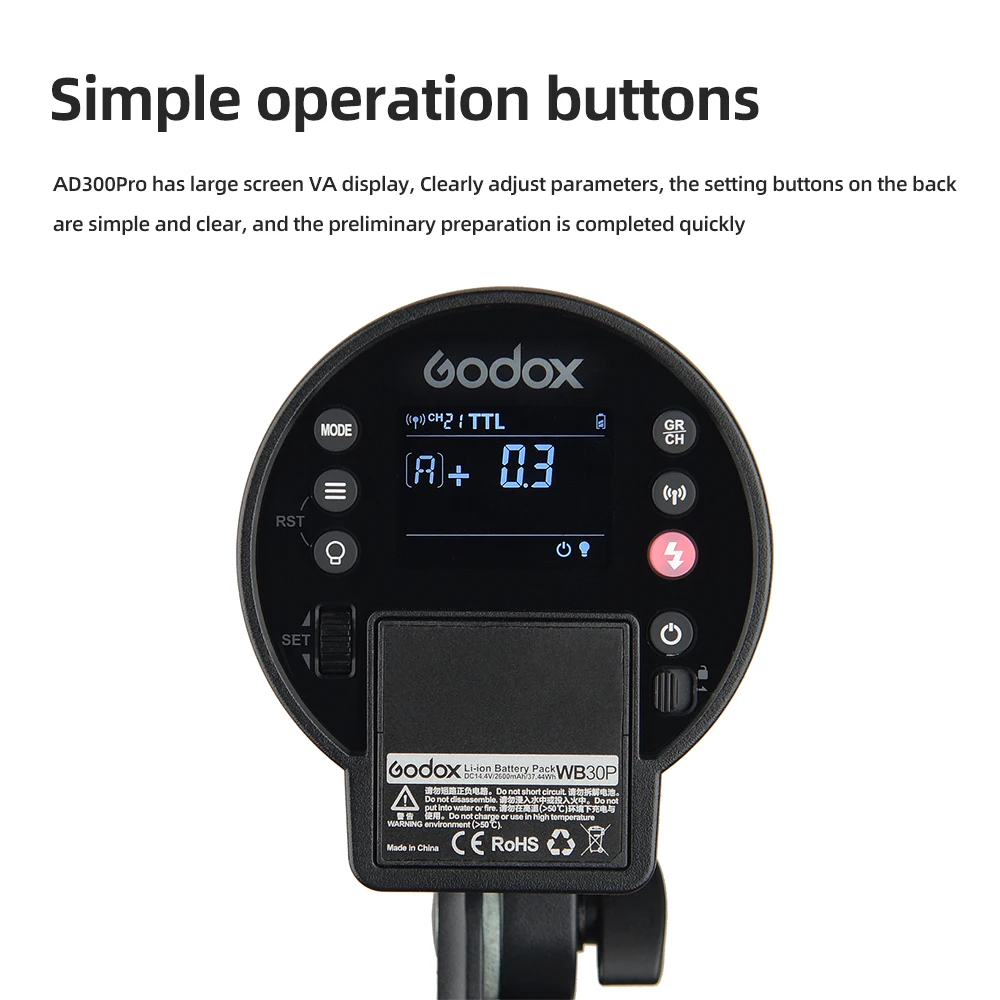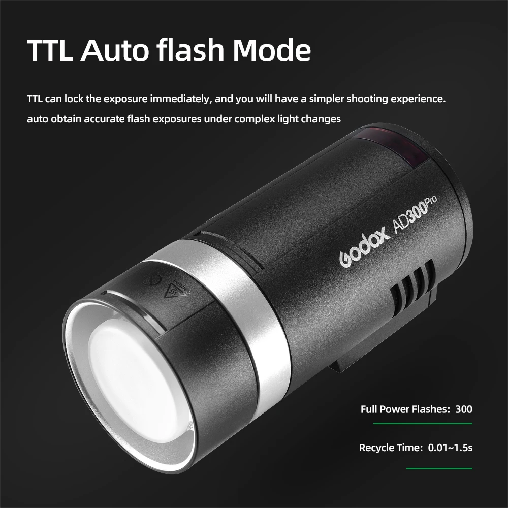 Вспышка Godox AD300Pro, уличная, 2,4 Вт, TTL, 18000 ГГц, с аккумулятором, для Canon, Nikon, Sony, Fuji, Olympus, Pentax