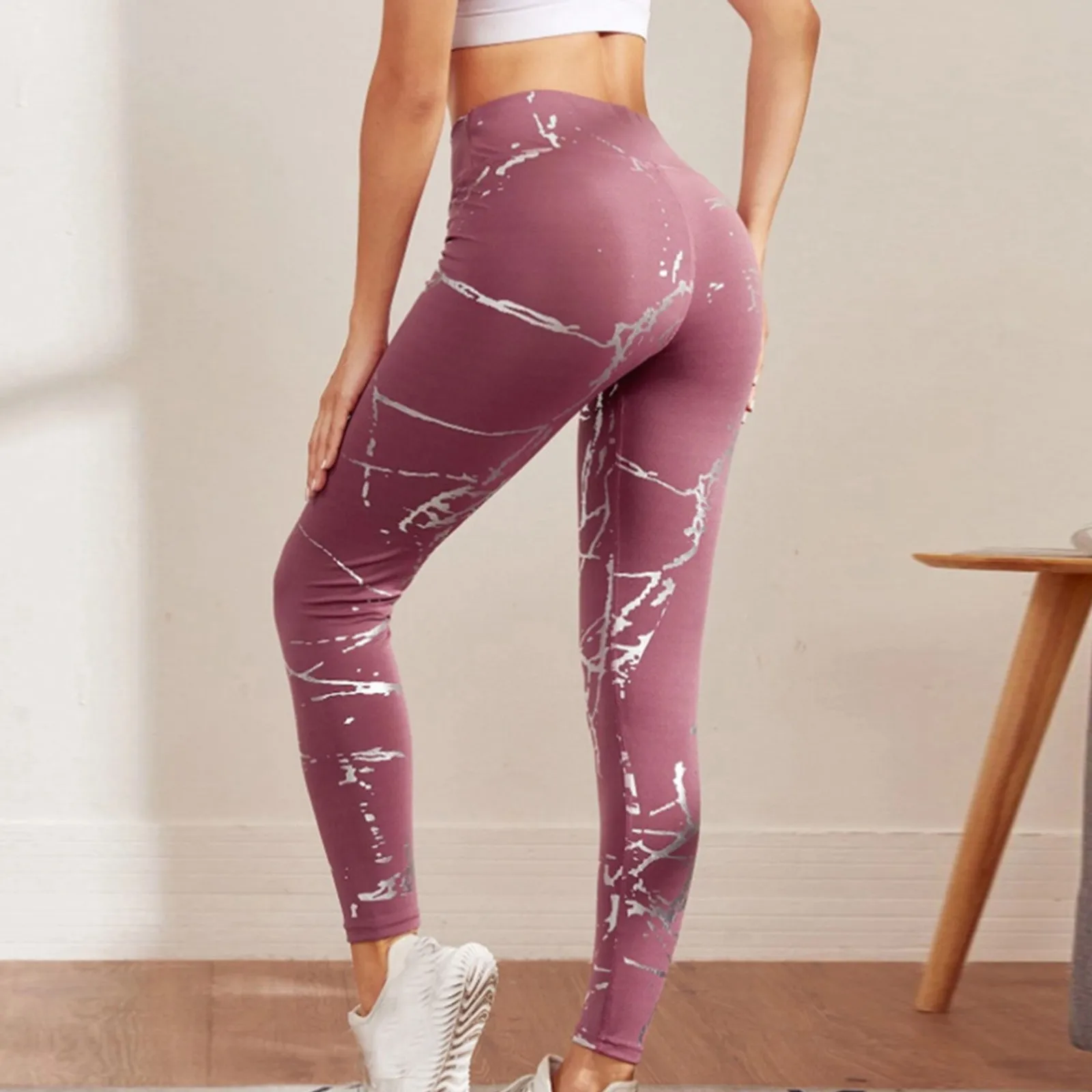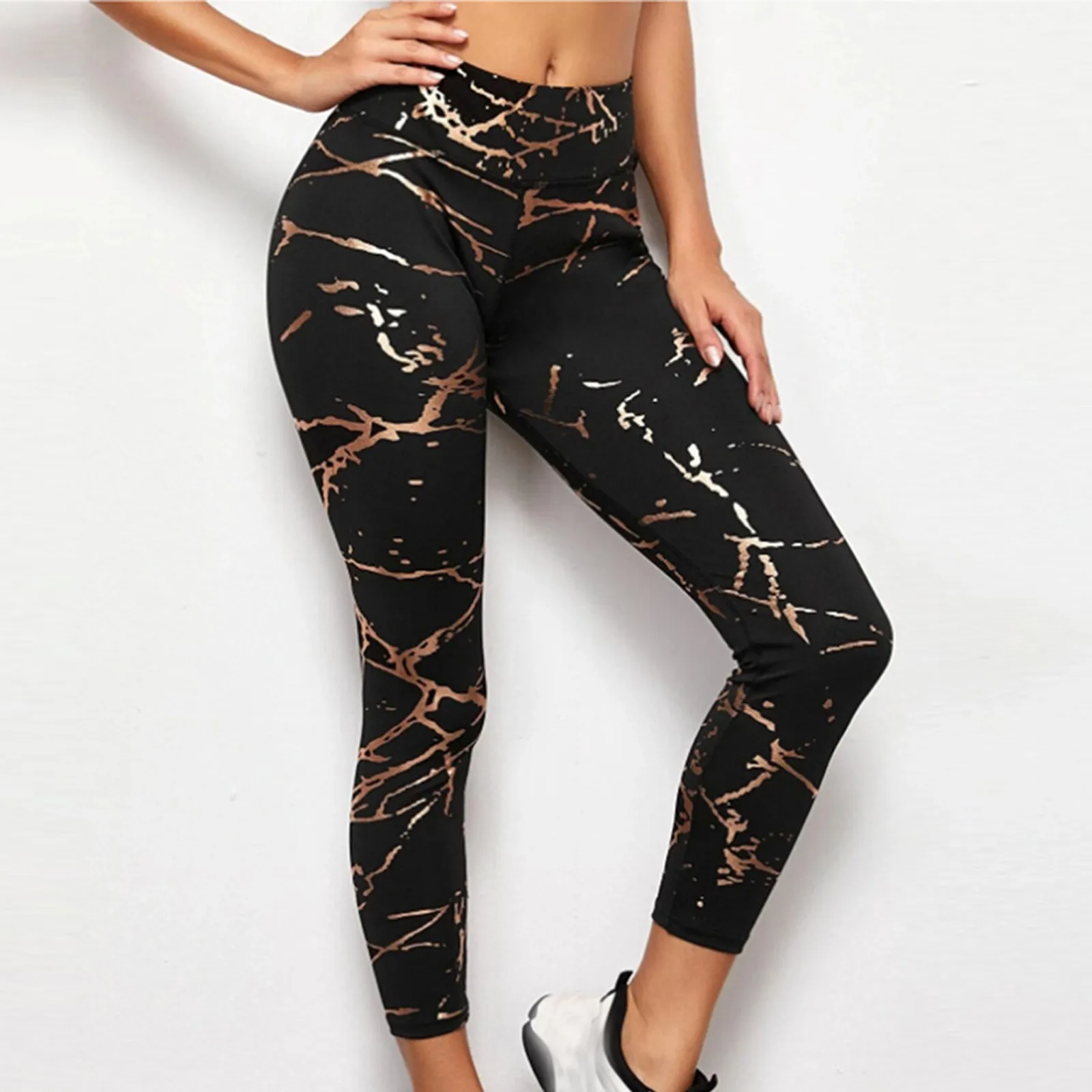 Леггинсы Женские спортивные с завышенной талией, пикантные облегающие брюки для фитнеса, пуш-ап, с бронзовым эффектом
