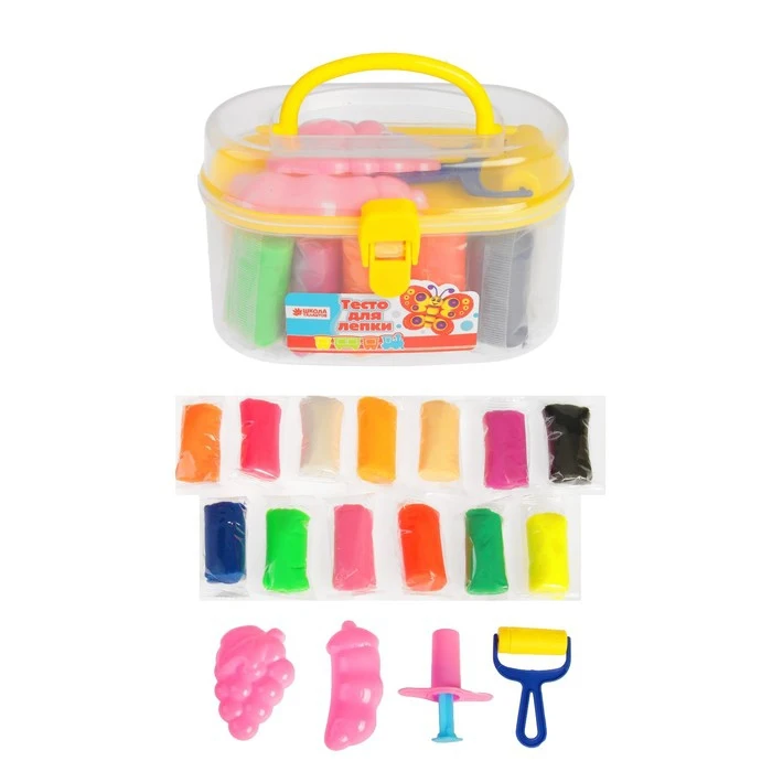 Тесто для лепки, 13 цветов, 200 г, 2 формочки, каток, шприц, цвет МИКС