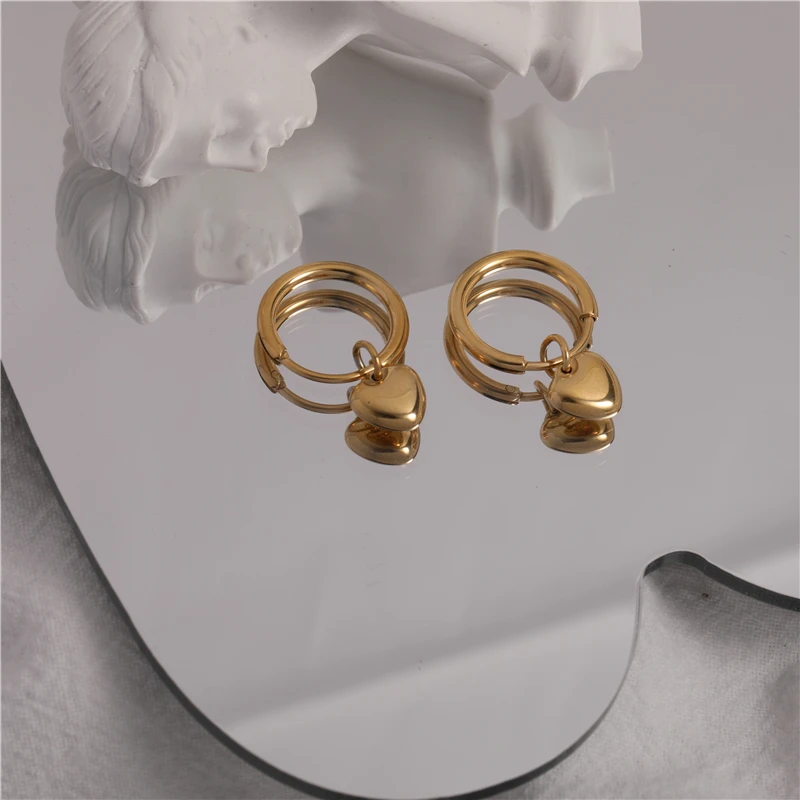 Модные серьги с PVD-покрытием, изящная подвеска в виде сердца, серьги-кольца, ювелирные изделия из нержавеющей стали, оптовая продажа