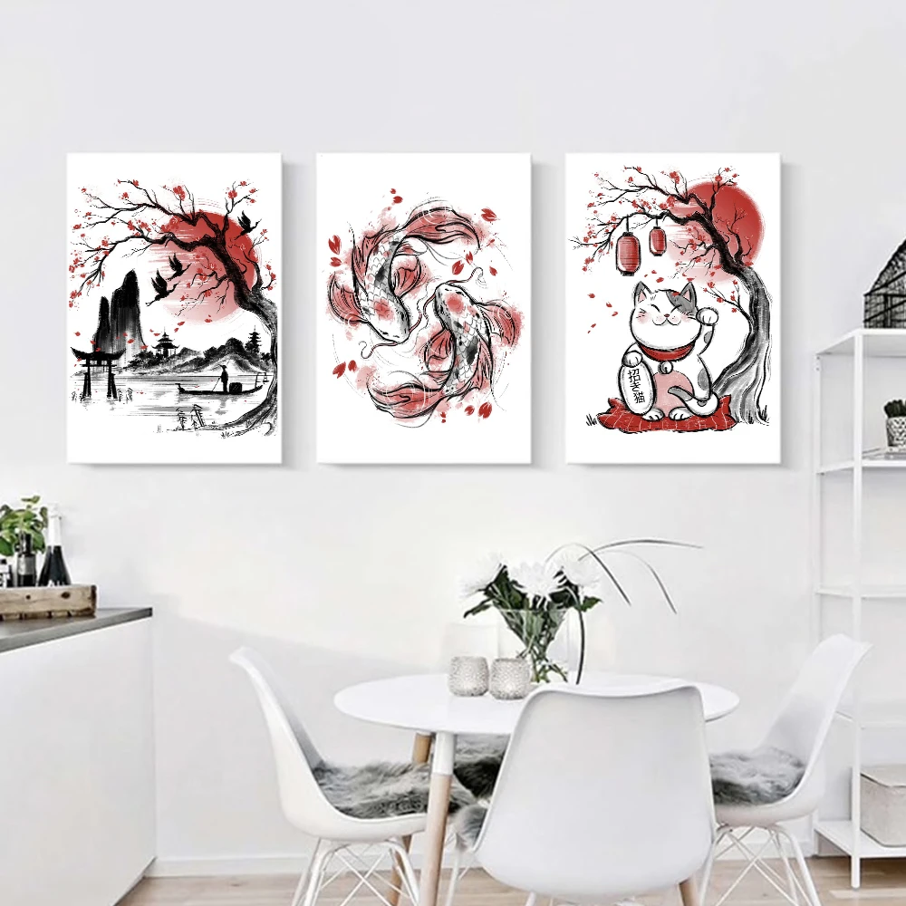 Принты для домашнего декора картины, настенное искусство, рубин гейша, японская кои лиса, модульный скандинавский холст, плакат, современный фон для кровати