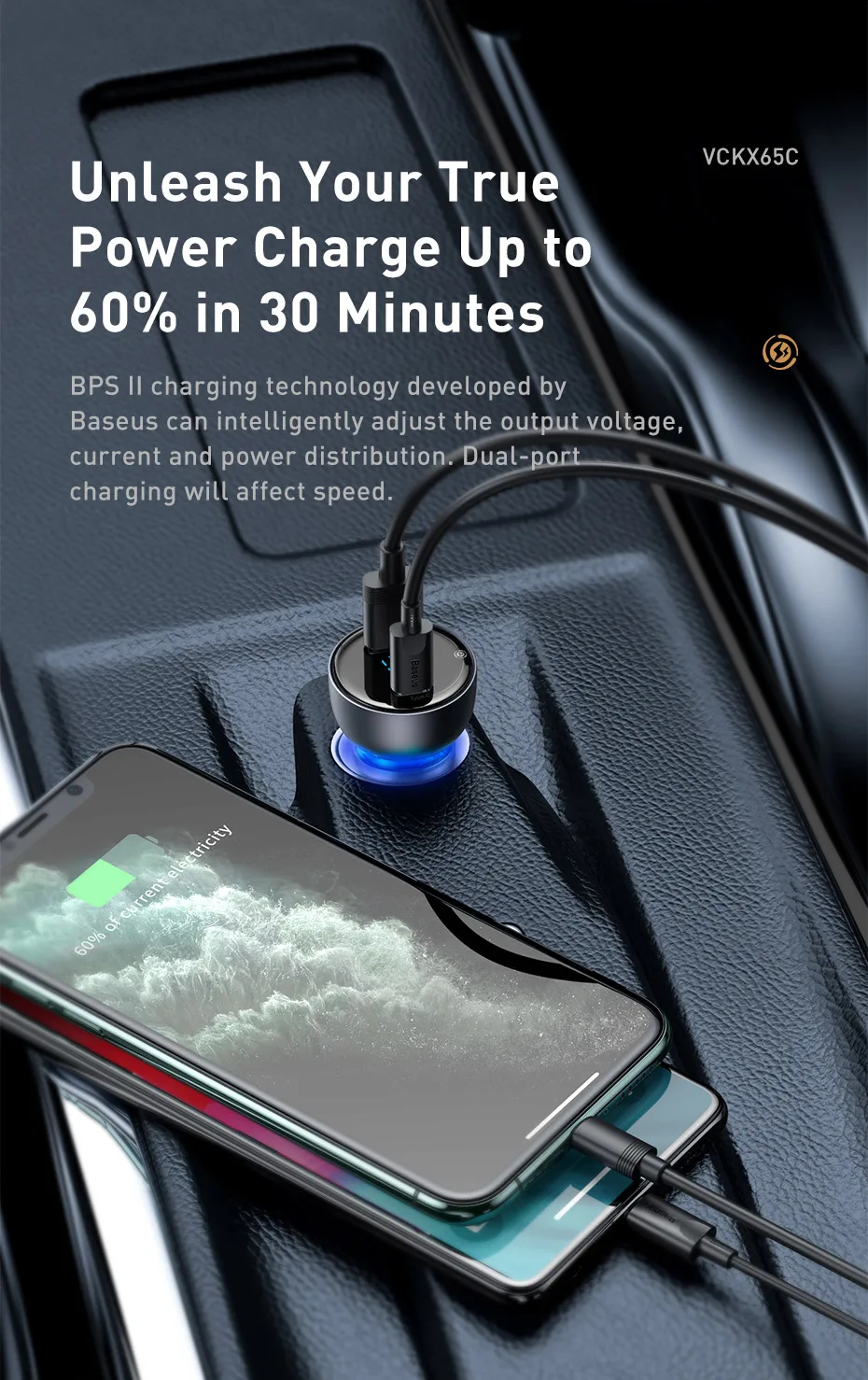 Советы: Это экологически чистый продукт Xiaomi, поэтому на товаре Нет логотипа Xiaomi, благодарим Вас за понимание перед заказом.Автомобильное зарядное устройство Xiaomi Baseus 65 Вт с двумя USB-портами и поддержкой быстрой зарядки 4,0 3,0 QC4.0 QC3.0 Type C PD для iPhone Xiaomi мобильный телефон